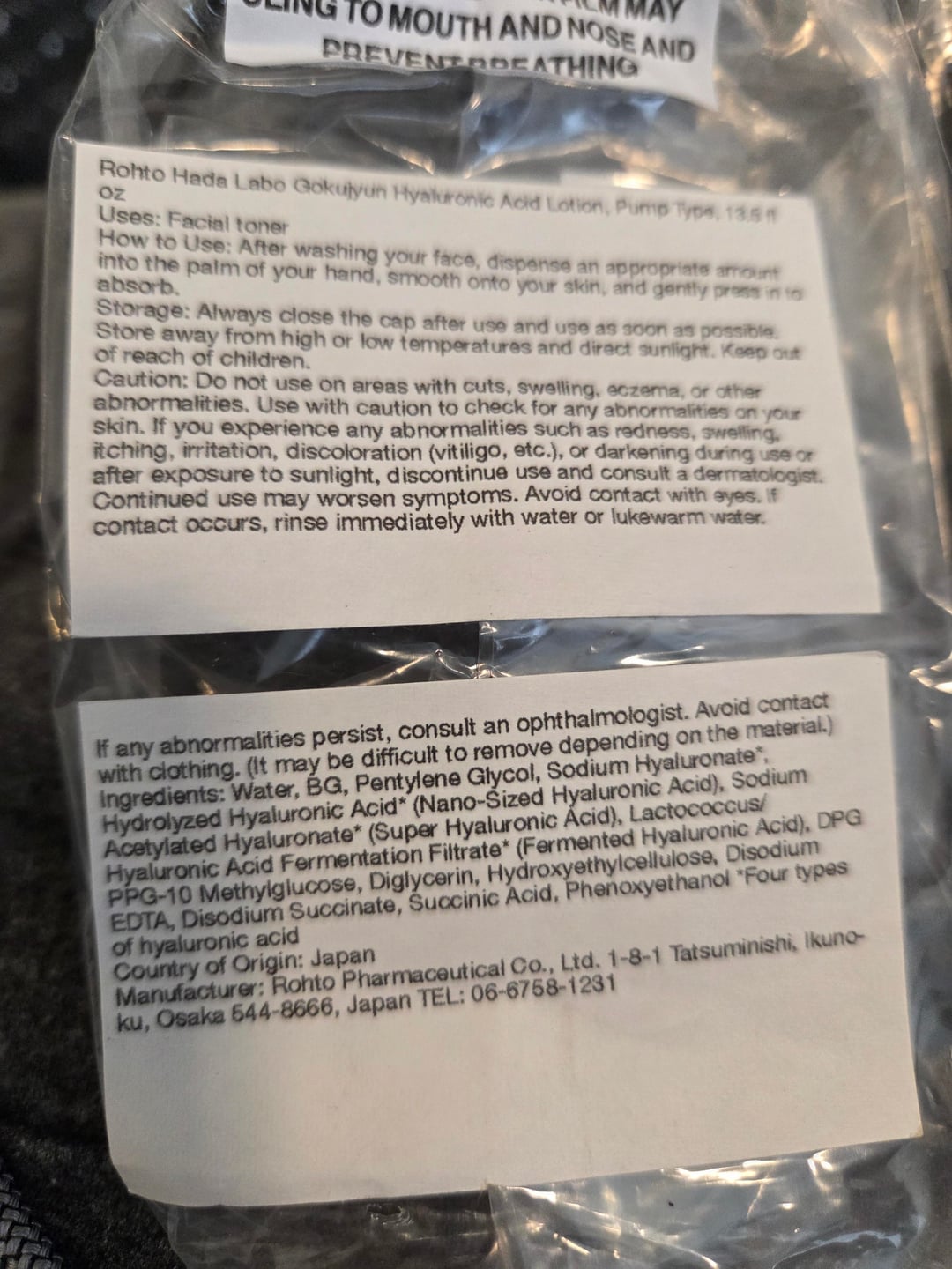 The small one is the clear/moist and the ingredients are different than the ones that came in English for the big bottle that just says hydrating lotion in English. by Dez2011