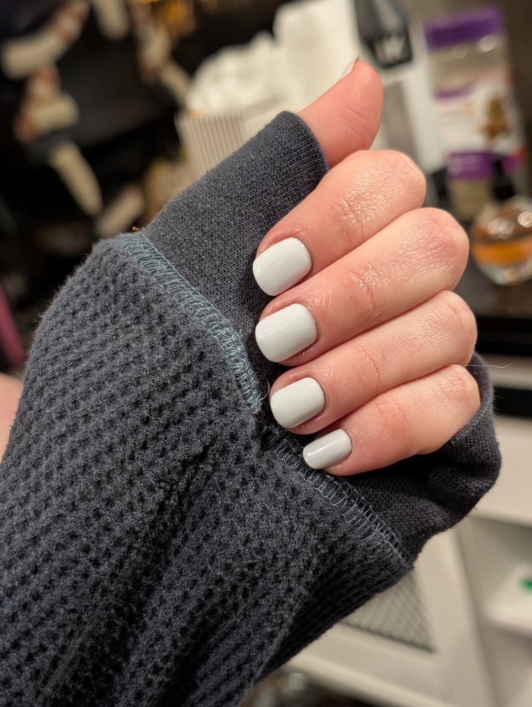 3 coats – Essie Cool and Collected 1 coat – OPI top coat 1 coat – Seche Vite Quick Dry TC I think a regular top coat under the quick dry has solved my shrinking problem by kirastrs