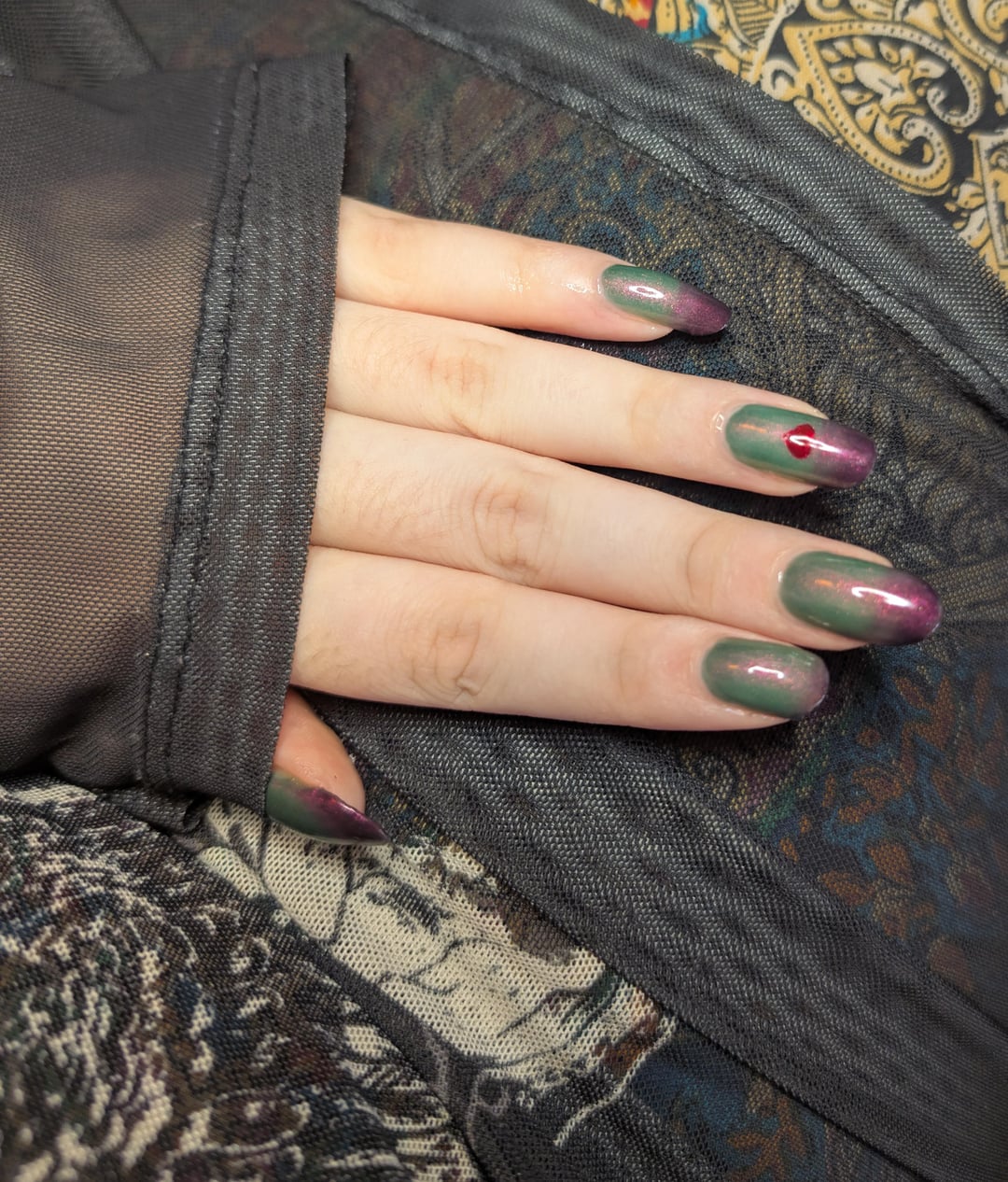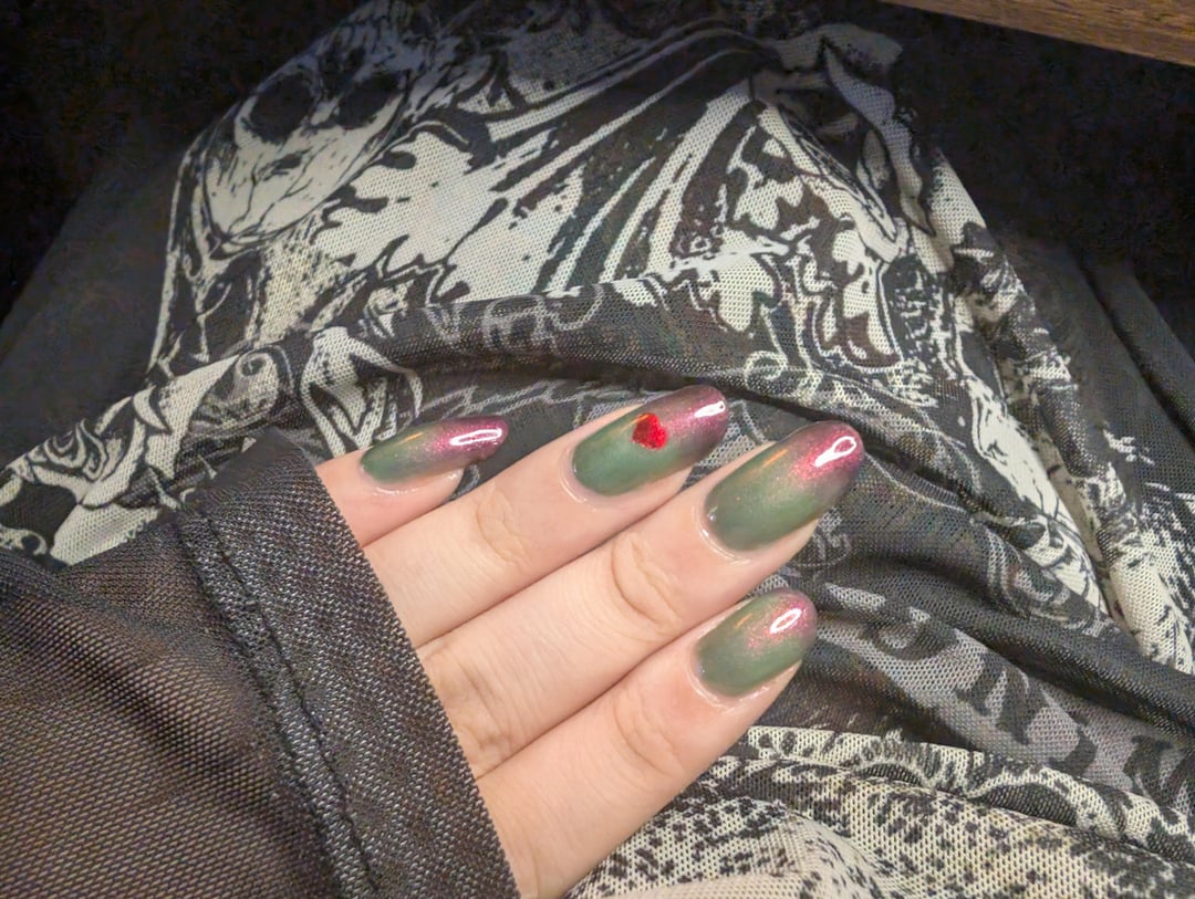 Taking advantage of this thermal from EDM called never found it while I still have length lmao. Sort of hard to photograph it's true to life colour, I'd say the first is pretty close. Used a decal with some fiery attraction for the heart on my ring finger! Last photo is the warm state.