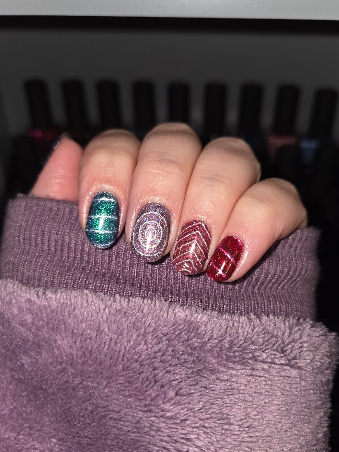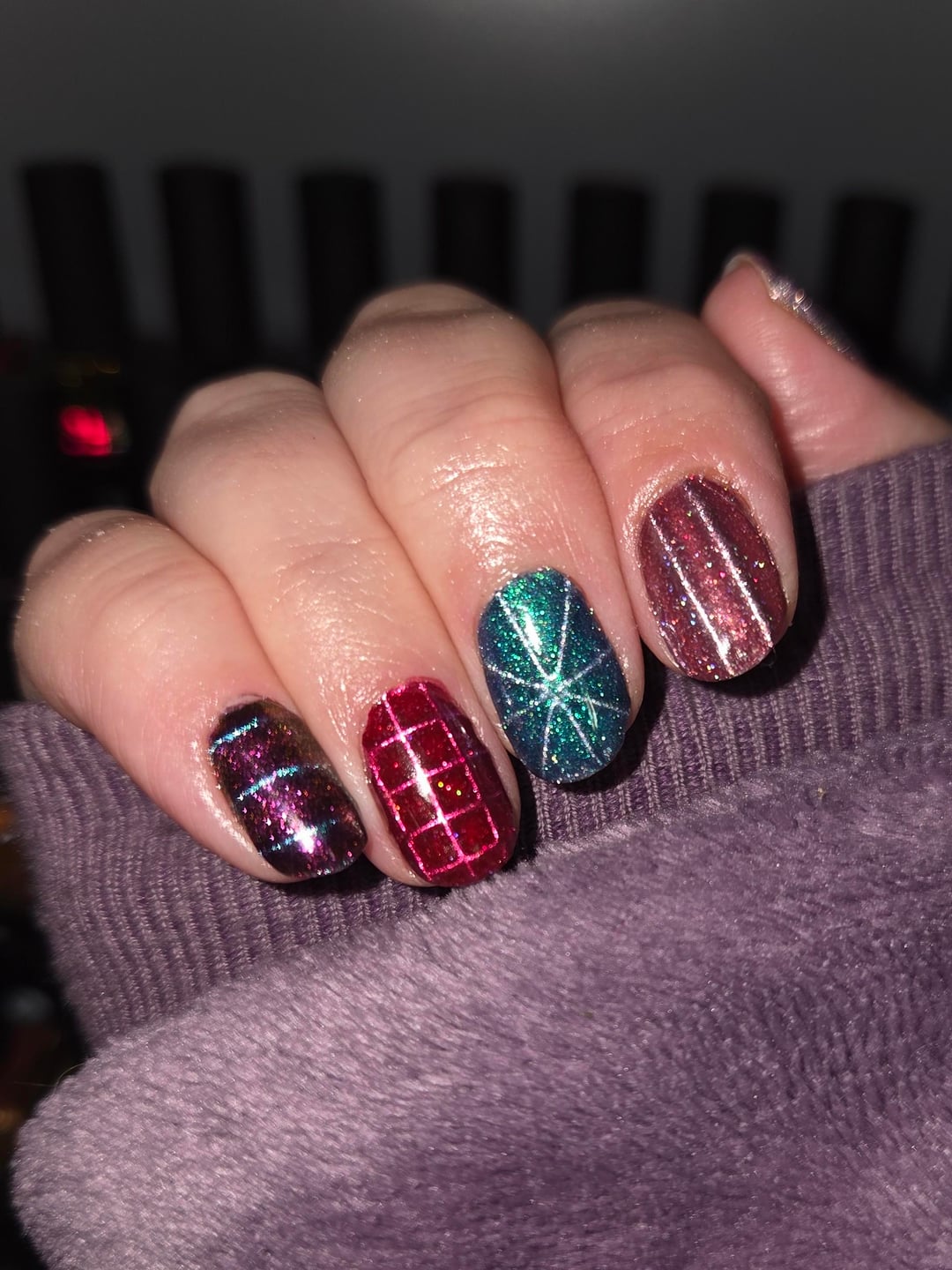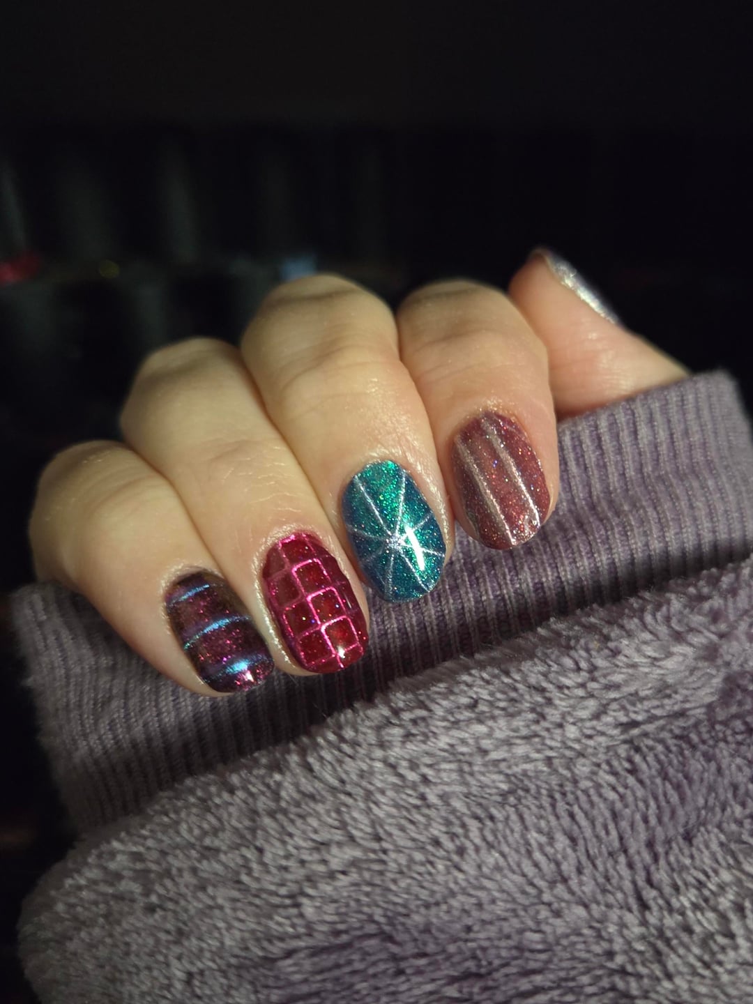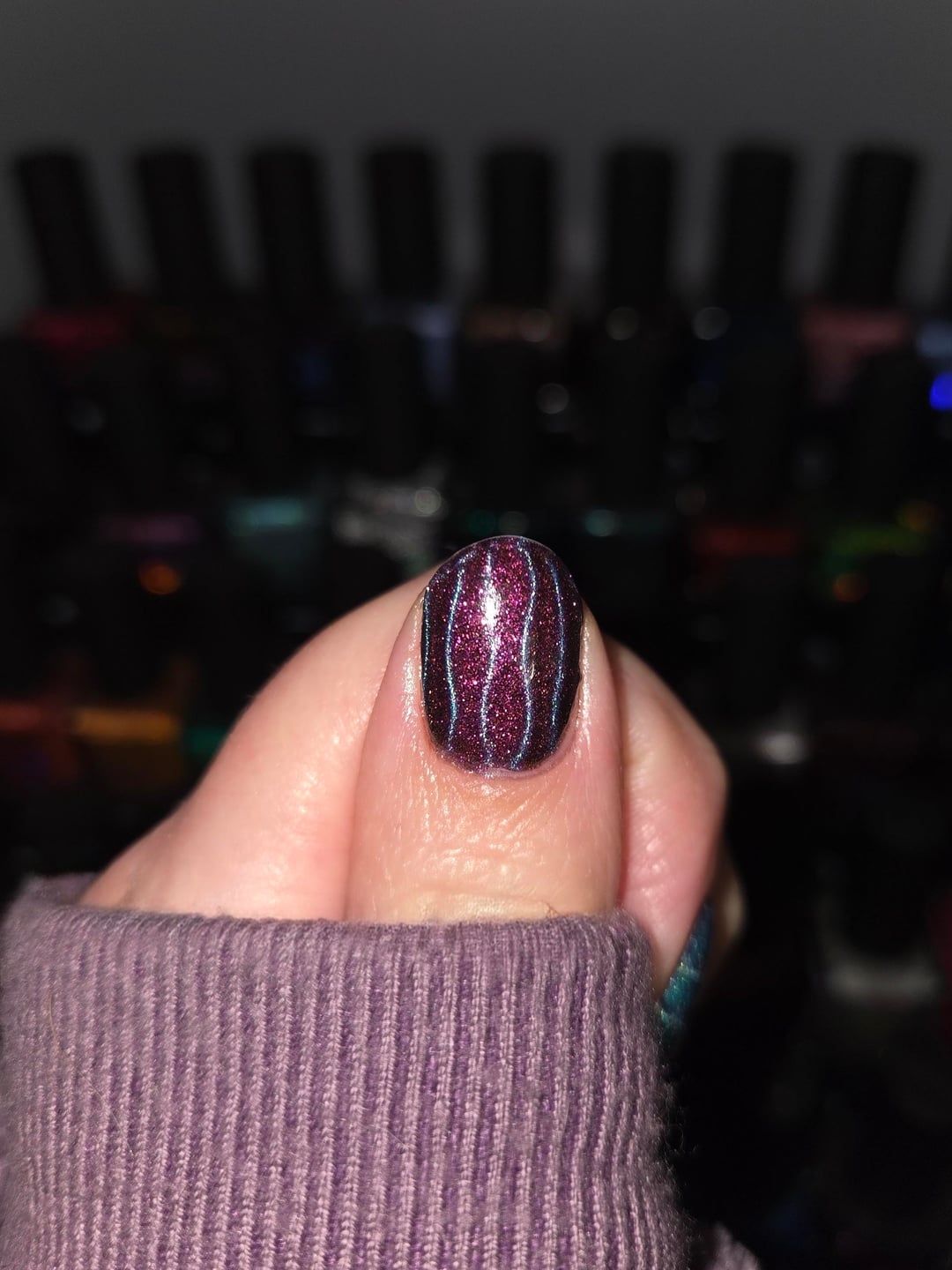 Photos taken 24hrs after application and there's still no dispersion!! Base: Mooncat Hardcore Basecoat & Getting Even Nail Primer Polish: HT Magnetic Attraction Collection Top: Sally Hansen Insta-Dri Topcoat by BossySpice