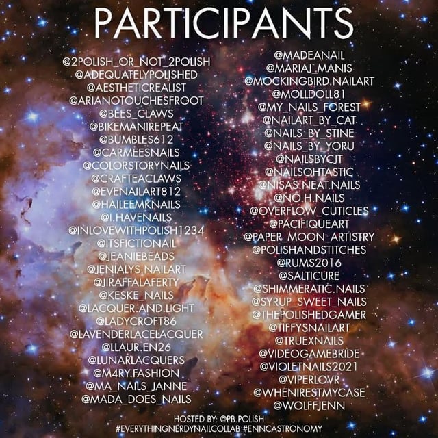 Thanks to pb.polish on instagram for hosting. If you can, please check out everyone else's spacey designs. There are some real stunners that put mine to shame.