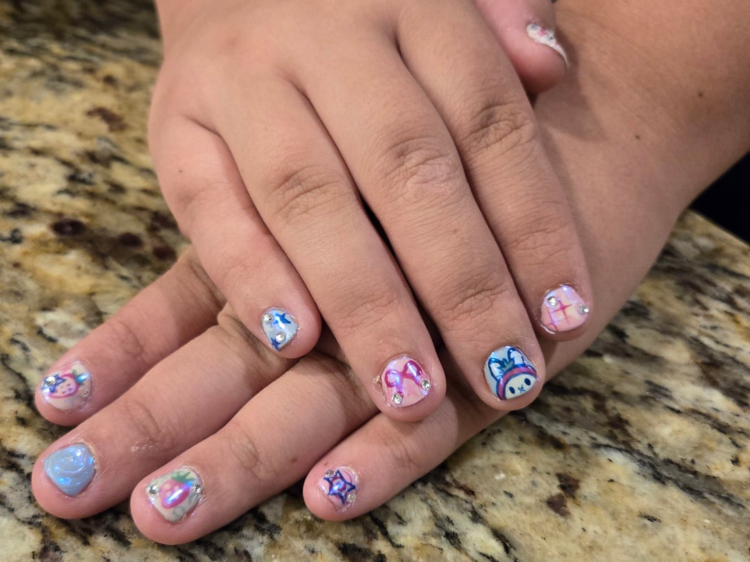 Kawaii Gel nails I did on my friends natural nails 𑣲₍ ᐢ. .ᐢ₎