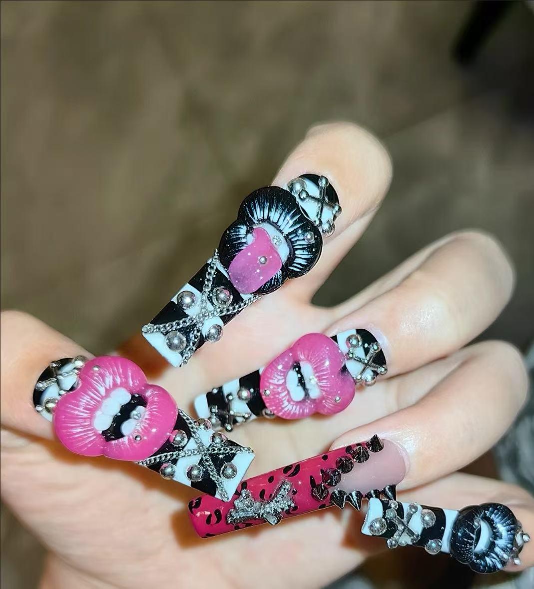 Oh,I like these the 3D pink lips nails , very pretty and cutting-edge