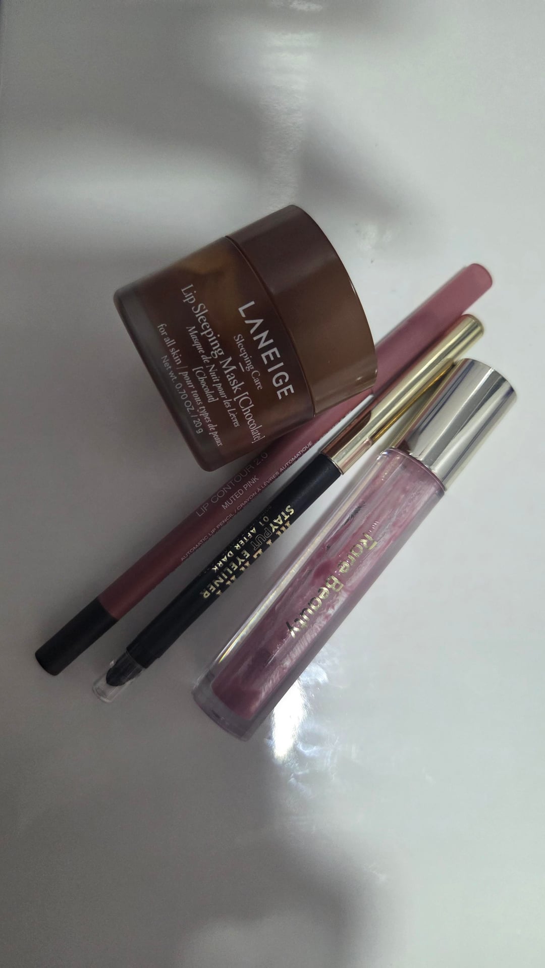 The Laneige isn't a full pan, but because it's a limited edition scent that I love, I decided to leave a little bit in it. But everything else is fully empty. I'm 100% gonna repurchase the Huda Beauty lip liner and Rare Beauty gloss in the same exact shades. However, I won't repurchase the Milani eyeliner at the moment because I have another eyeliner that I like. I also won't repurchase any Laneige masks because I have 4 more that I'm trying to finish. This is actually my second full size Laneige mask that I finish.