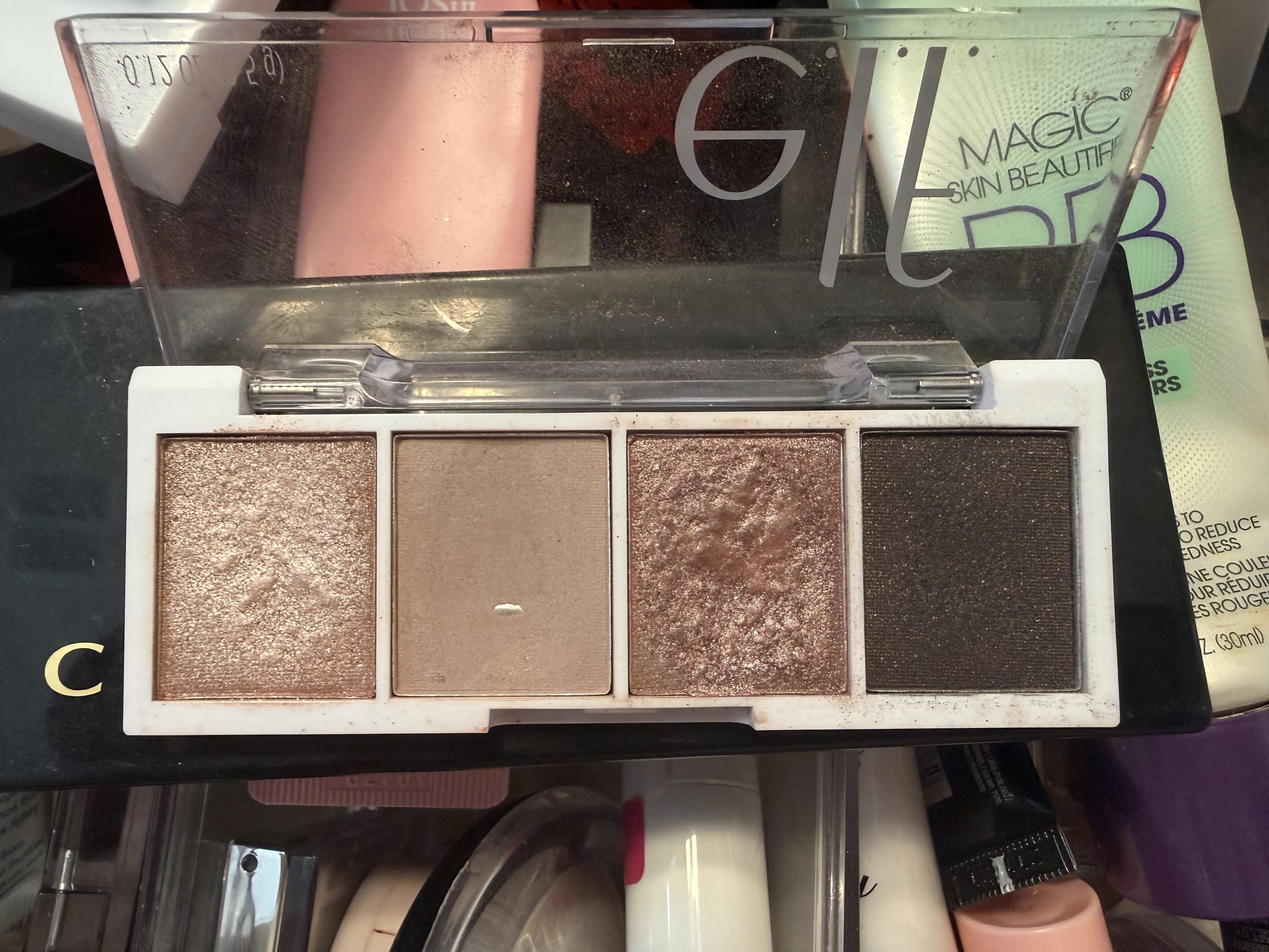 Tiny little pan in the 2nd color of the ELF Rose Water bite sized quad and a pretty big dip in the 3rd shade by zenporchgarden