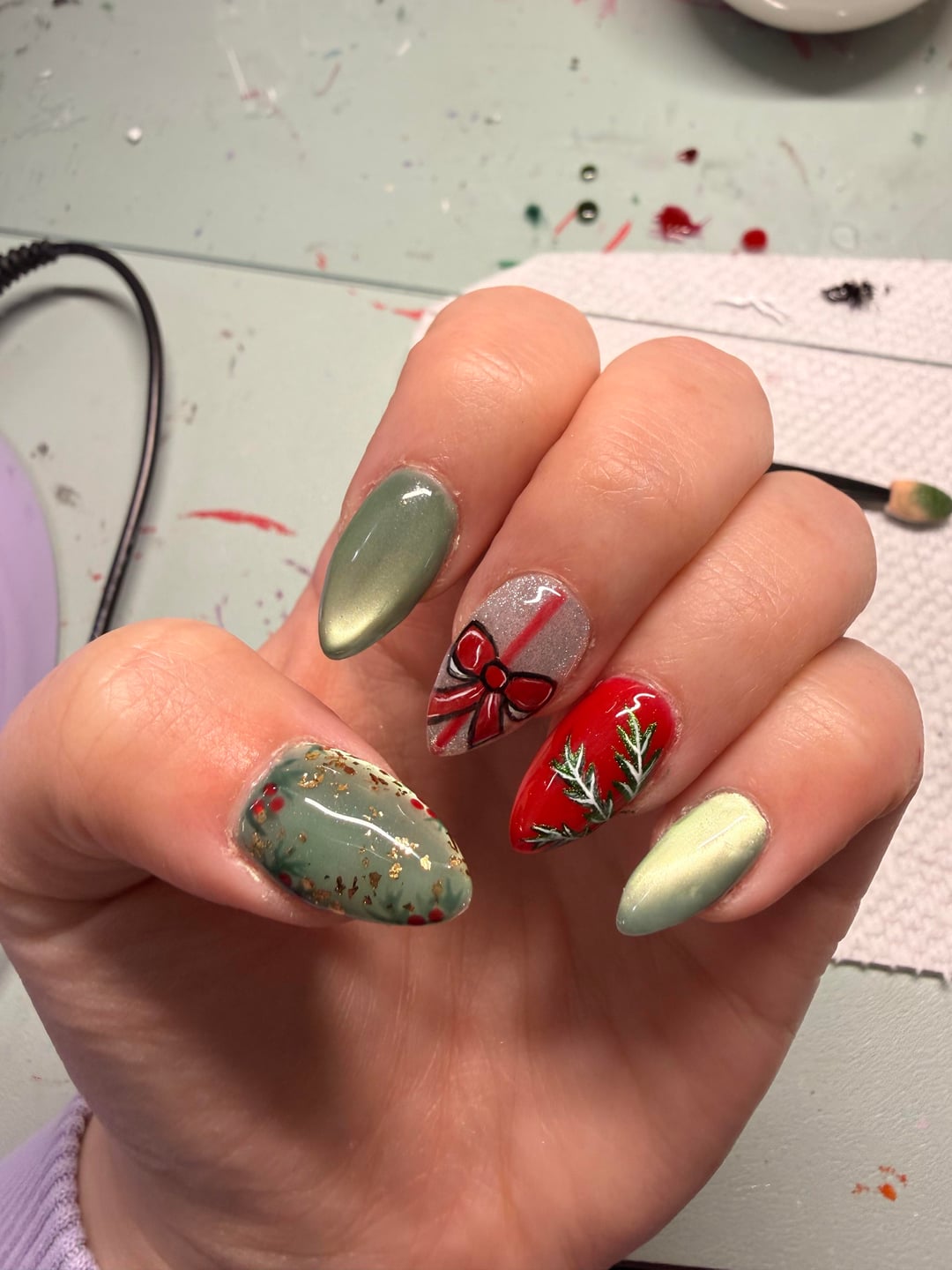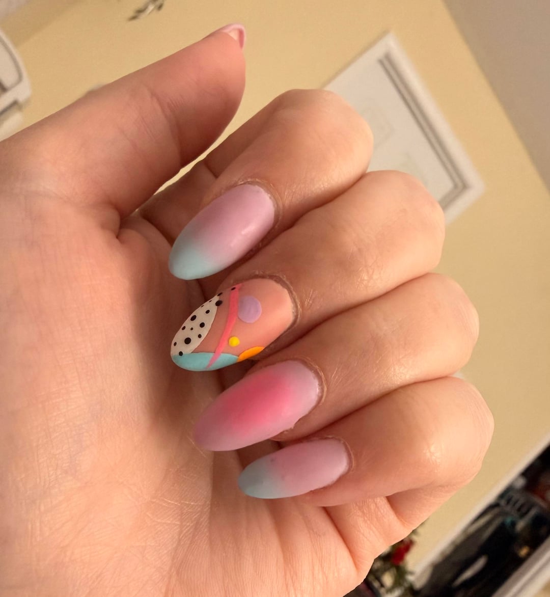I’m including a few photos of my own nails. I’ve been doing them for about a year now, and over time I have enjoyed getting more complicated and trying new materials. I clearly struggle in the cuticle area and these sets took an embarrassing amount of time and effort. Like, 6-8 hours.
