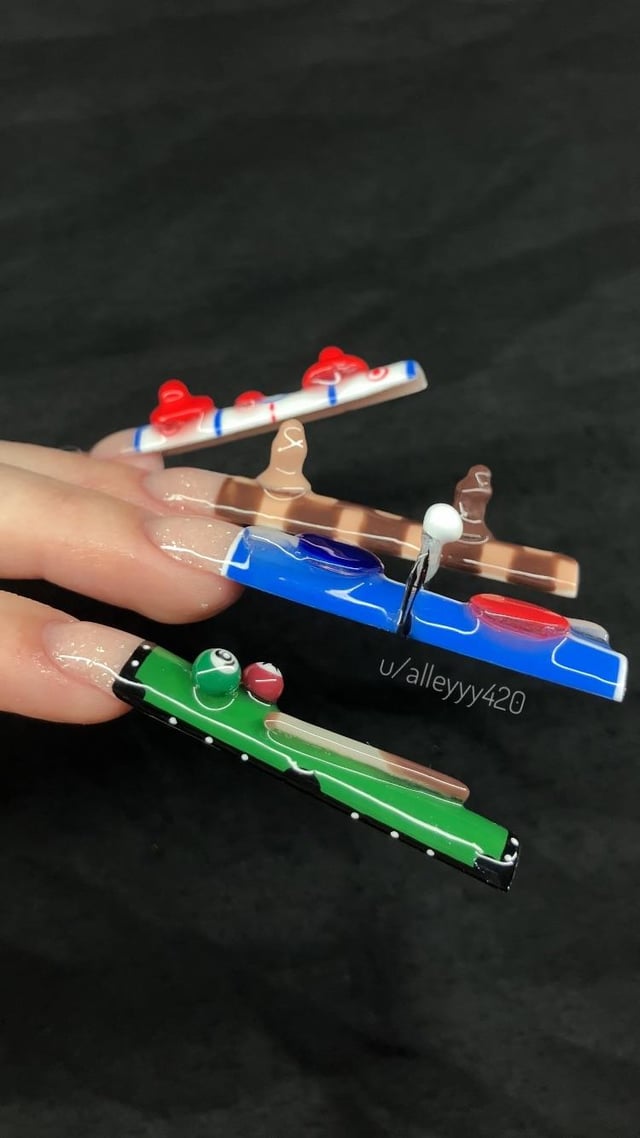 My table top game set. As you know, I just went with the flow. This set took me almost THIRTEEN hours, but it was so worth it. I can always function with nails, but the net specifically gave me a run for my money LOL