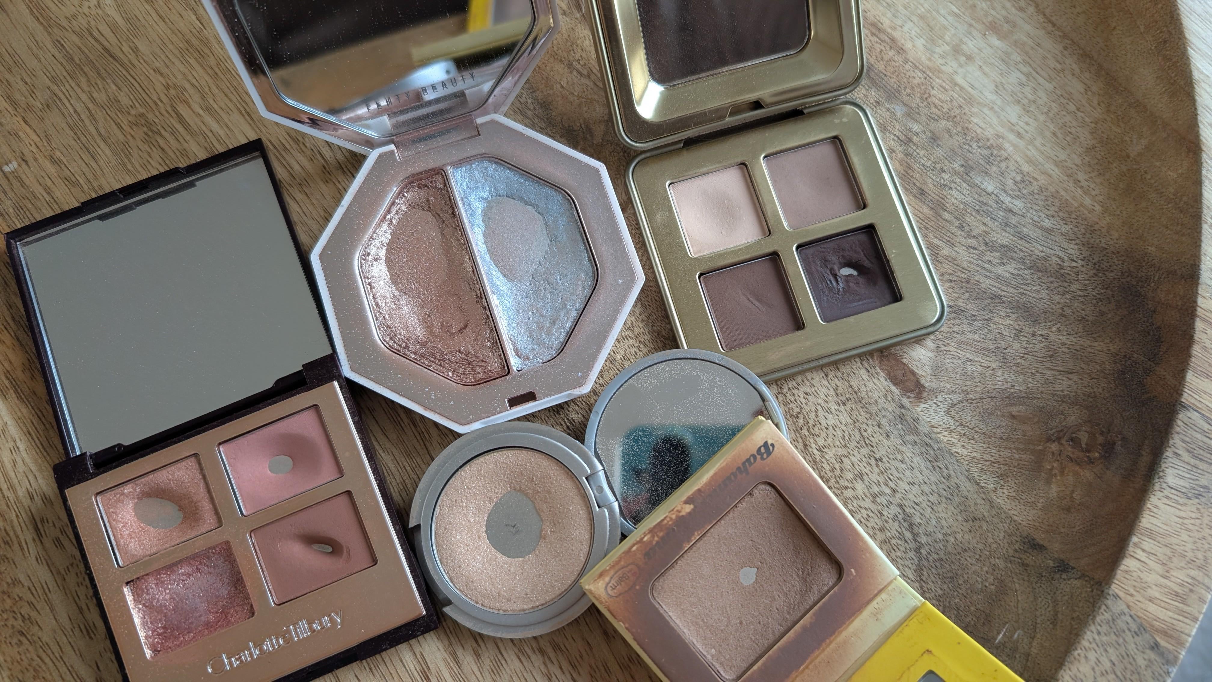 Products: – Charlotte Tilbury Pillow Talk Luxury Palette – Hourglass Curator – Minimalist – Fenty Beauty Highlighter Duo – Sand Castle & Mint'd Mojito – the Balm Mary Lou Highlighter – the Balm Bahama Mama bronzer by BiancaMadalina