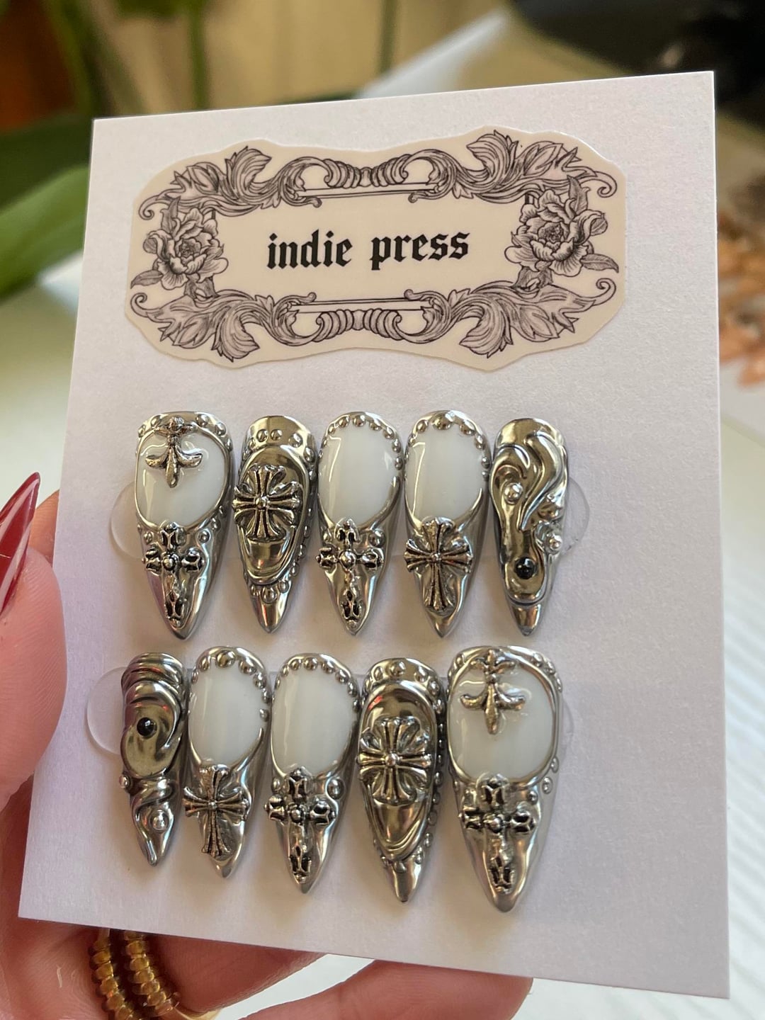 haven’t posted in a min but wanted to share some recent nails i’ve made :,) first set is for someone’s wedding!! by PressOnLuvr