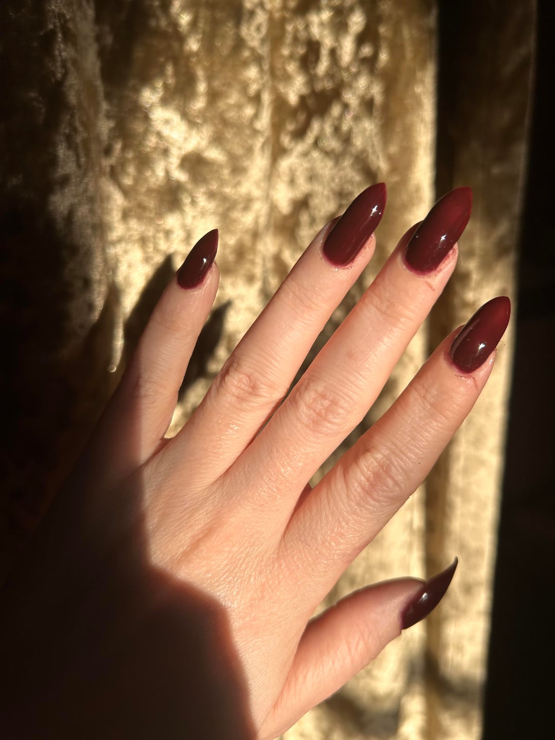 3 coats of Cracked Cordially Invited. In direct sun and indirect natural light.