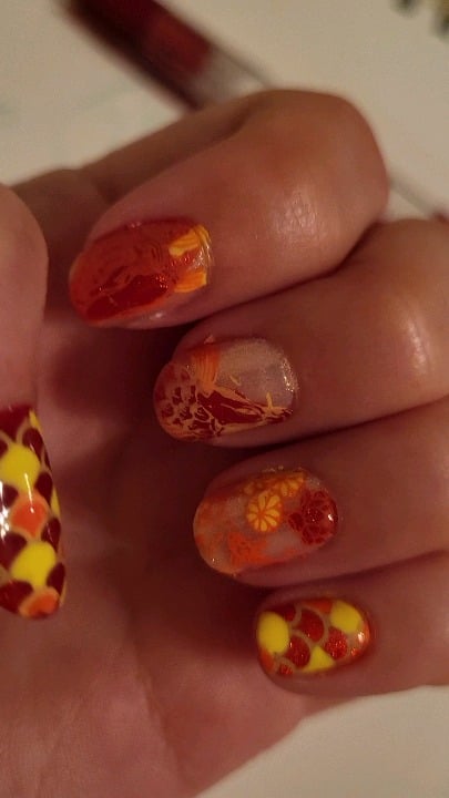 I was using Cirque Fire Horse the other day for a different look and immediately thought of pretty red fish scales. Now we are here.