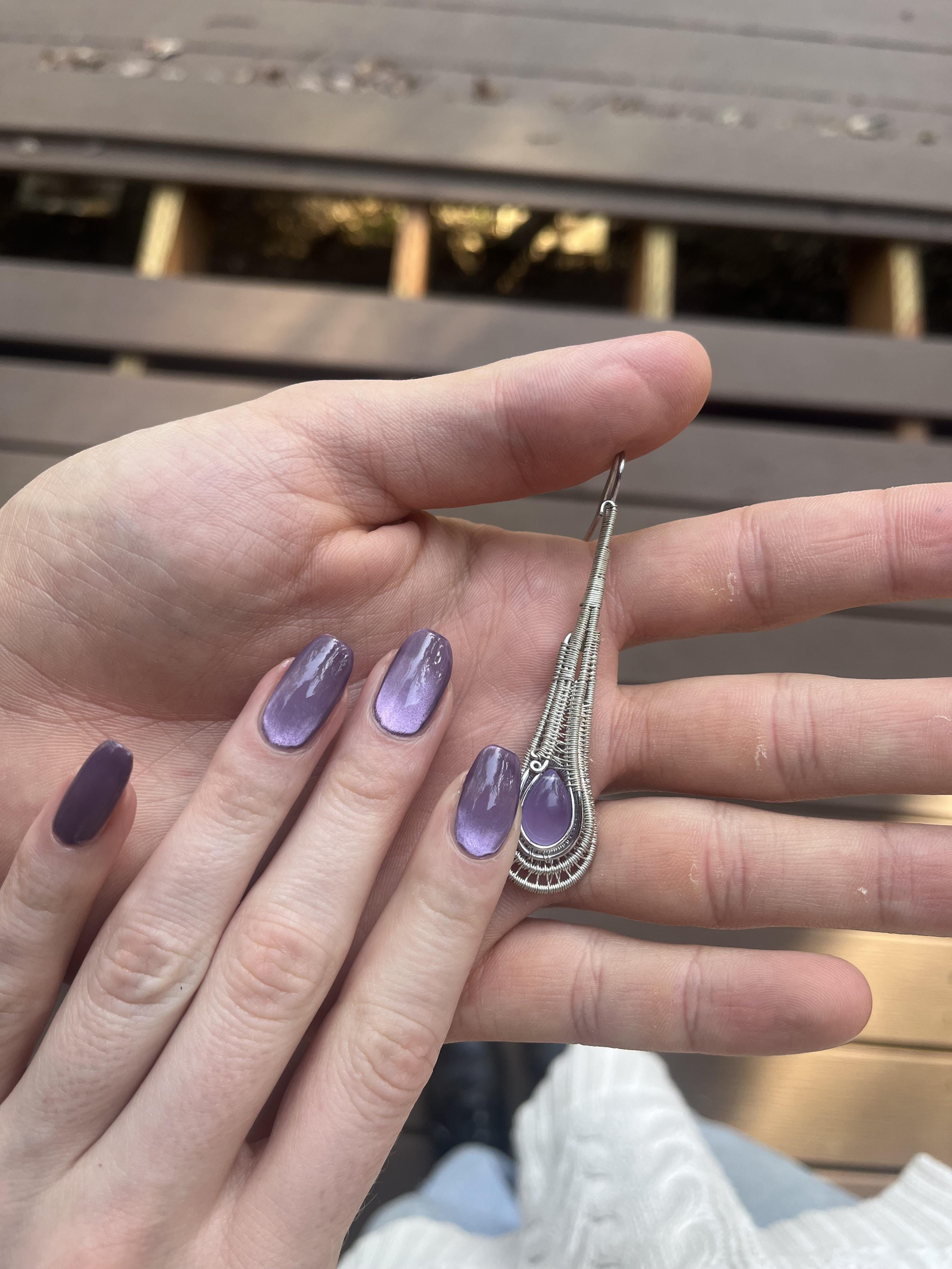 My boyfriend got me Mooncat’s Clair de Lune for Valentine’s Day, and it perfectly matches the earrings he made me 💜