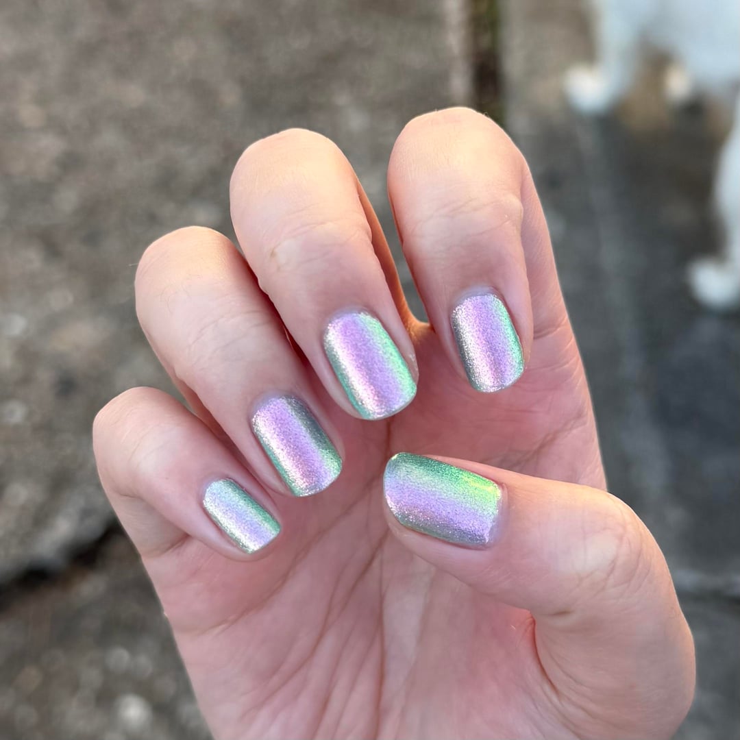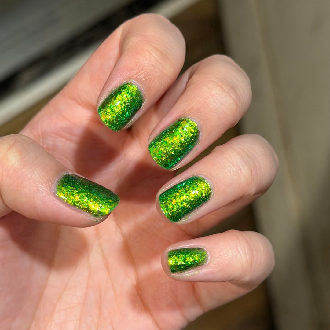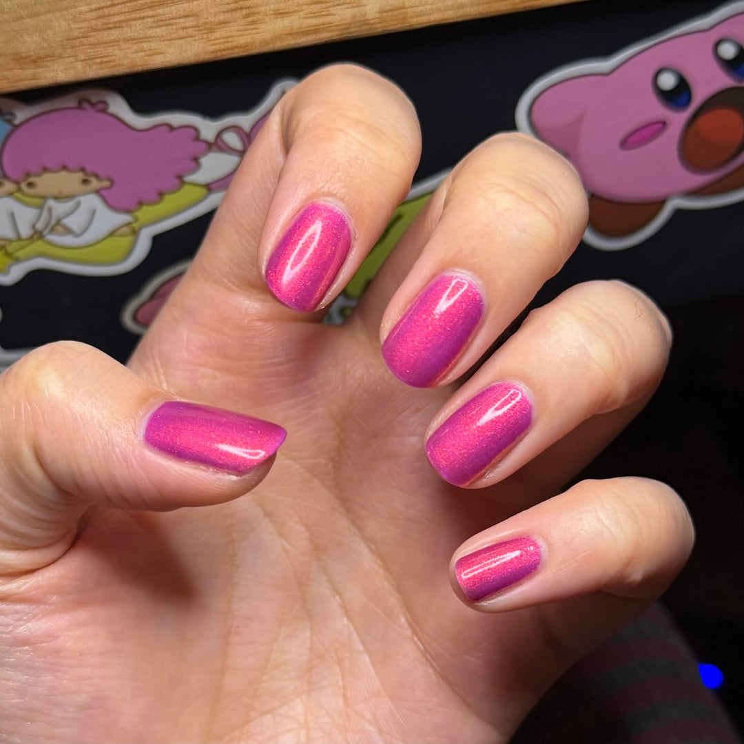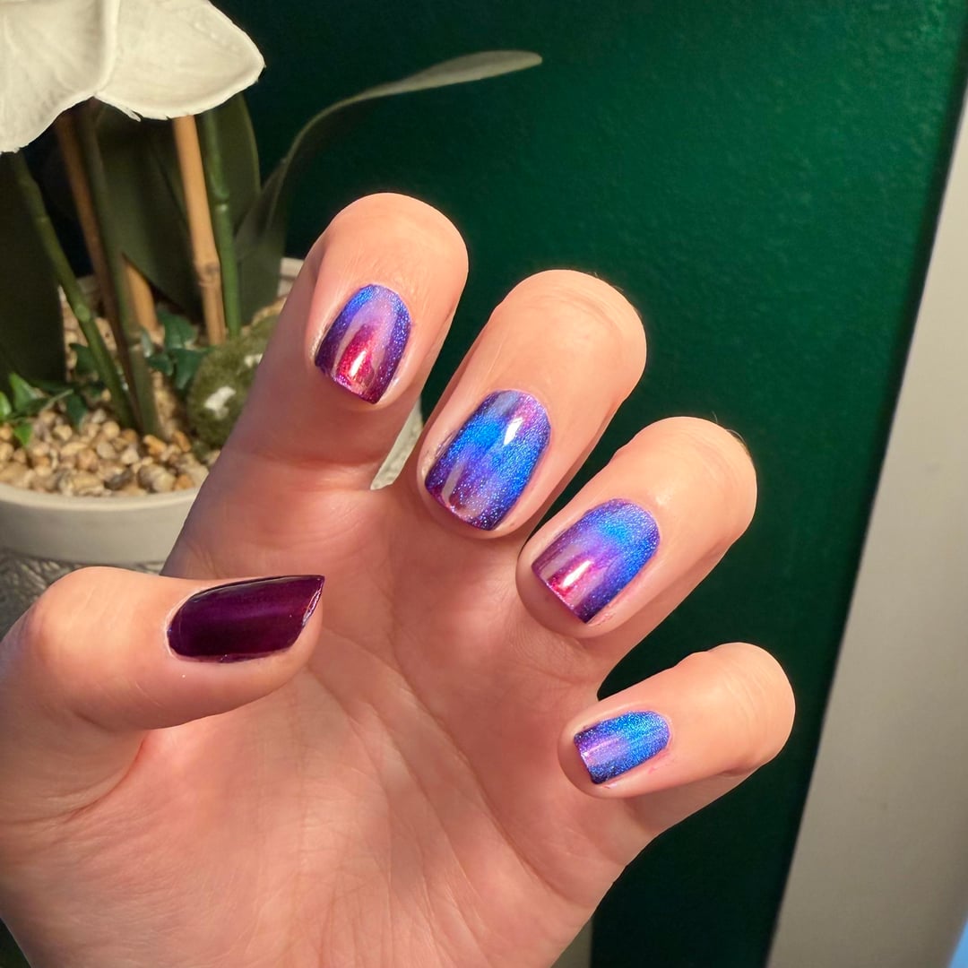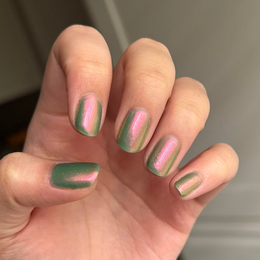 Lurid Lacquer – Resolute on thumb, index, and pinky. Lurid Lacquer – Indomitable on middle and ring.