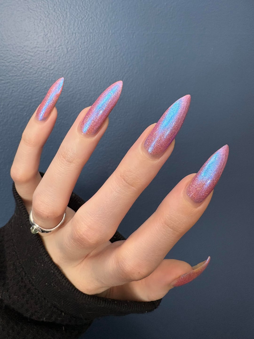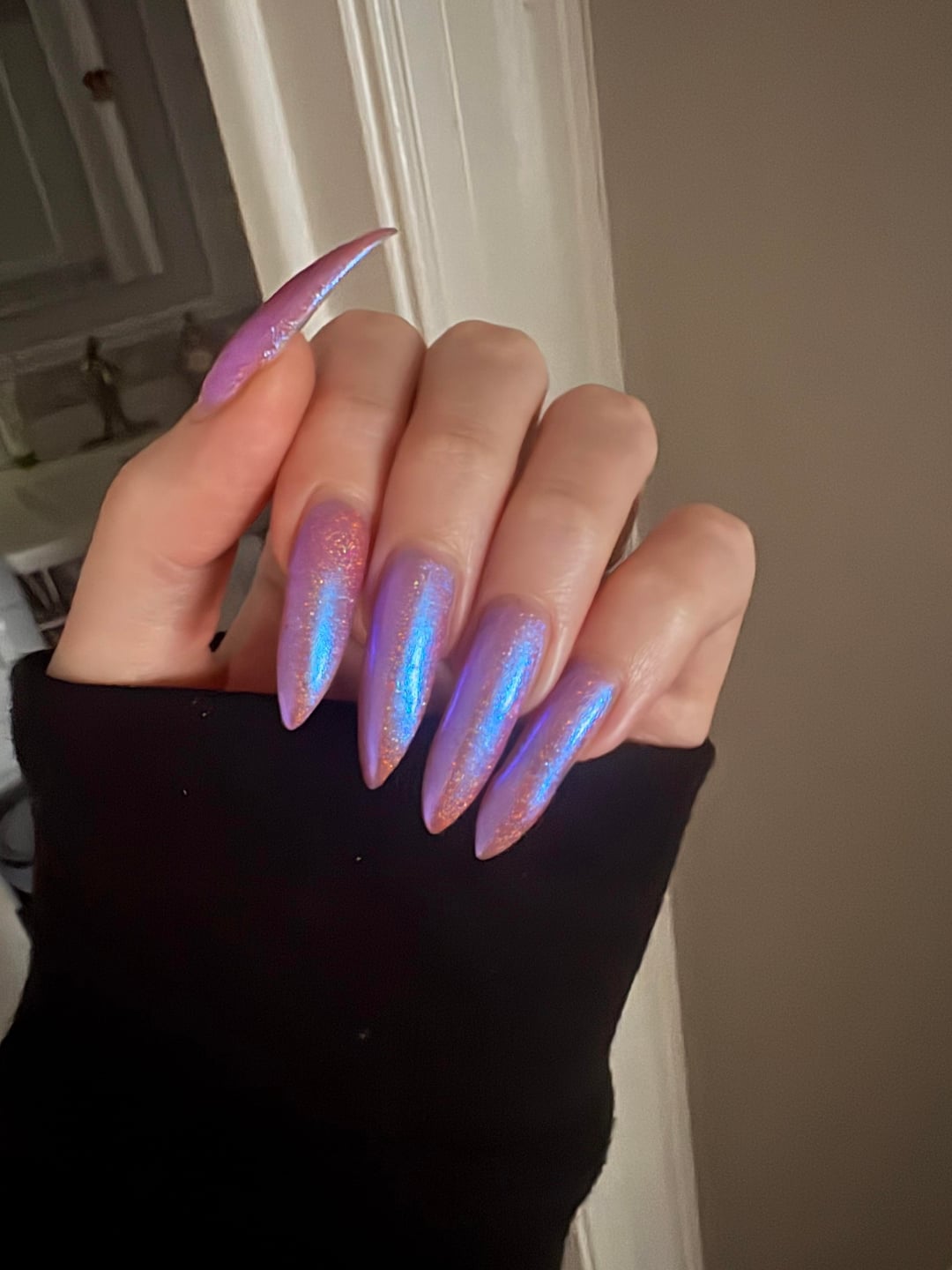 – slight blue discoloration near my cuticles from my hair dye oops