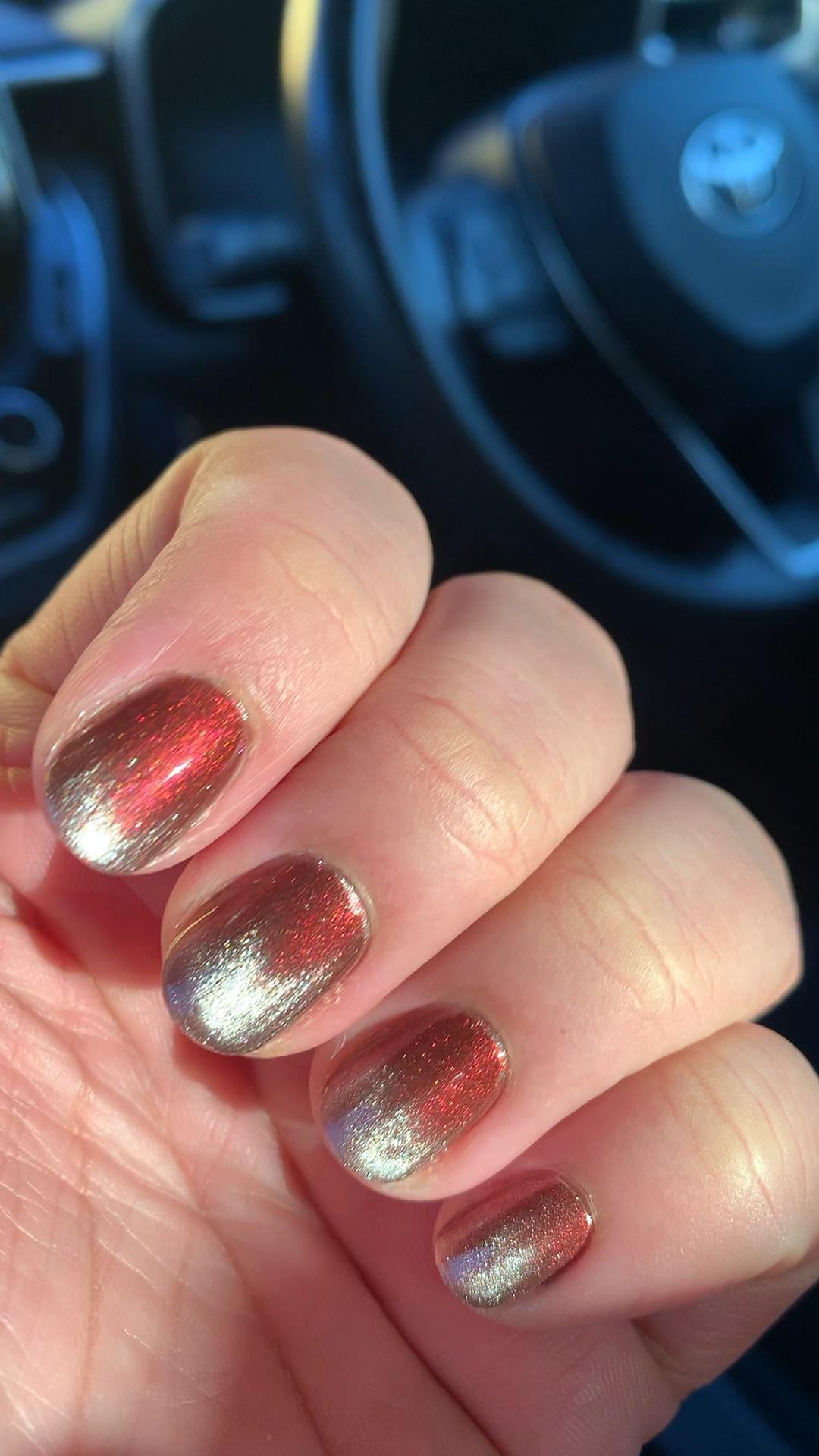 Athaliae on March 2, 2026 3:32 pm I love it and I hate it My attempt at watch charger French mani with Mooncat Lord Vader. I’m not sure I like it, I’m not sure I hate it… it might improve with a better application, maybe? Product list: – Nailtiques 2 – Mooncat Lord Vader – Essie Gel Couture Top Coat – Magnetic Watch Charger