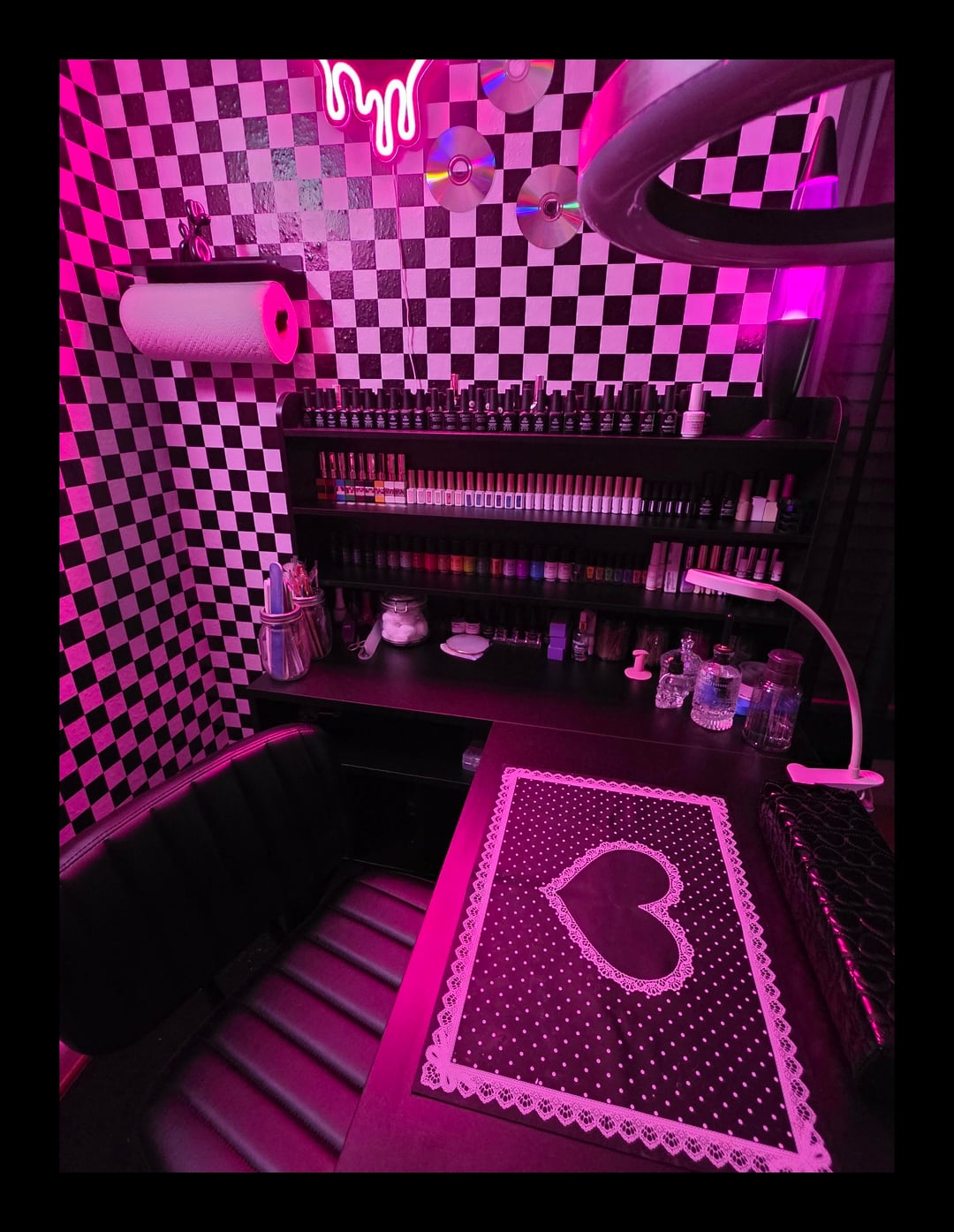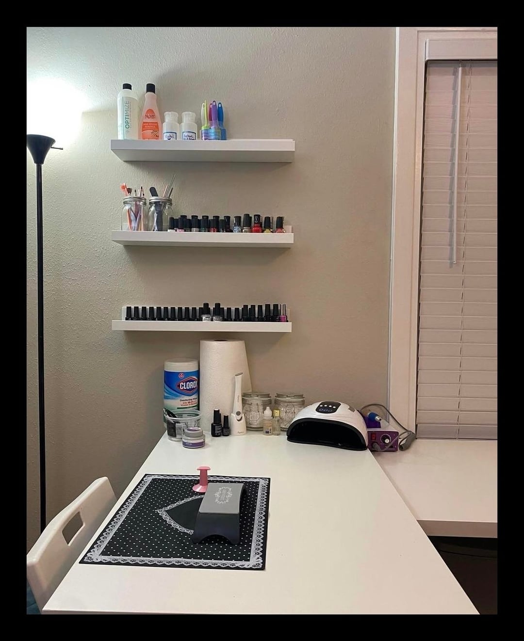 I've been painting my own nails for over 20 years. I've always kept my nails natural and short. In 2021 I went to a salon to get a stiletto ombre set for my birthday, and they did me DIRTY. So after wasting $90, crying, and removing them 2 days later, I decided to reignite my nail hobby and do my own. I researched gel polish, applying my own tips, etc..and over the past 5 years I have expanded my polish and nail stamping collection. This past month I was finally able to upgrade my space. I'm calling it my nail studio..because why not?? 😌💅✨️ see photos for my set up in 2021 to present day.