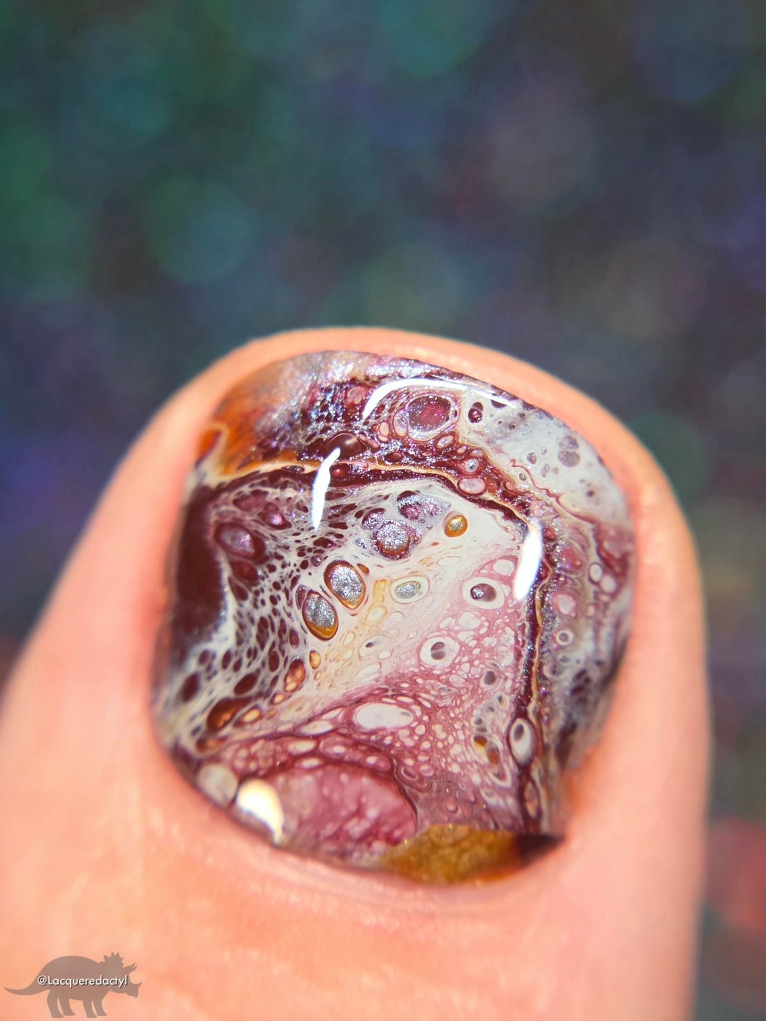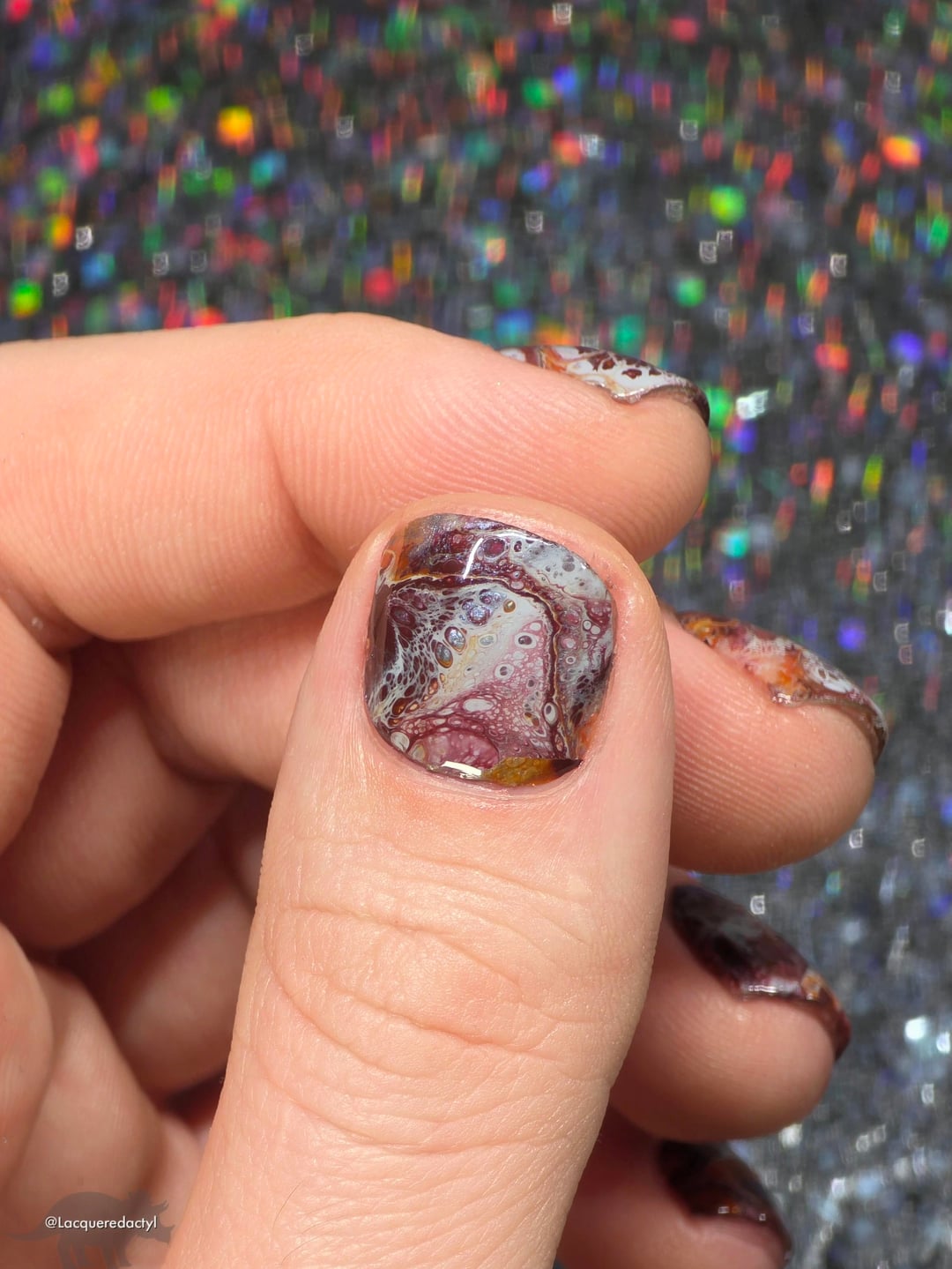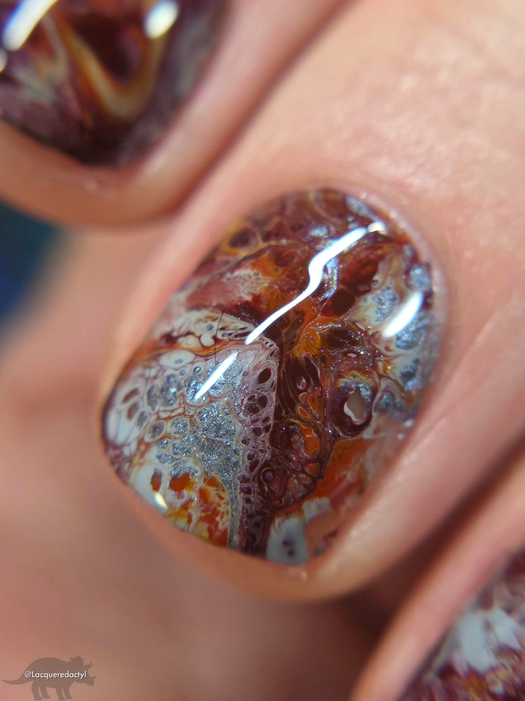 Products Used: Cracked Polish: Delicacy in Sardinia Buttoned Brown Space Glaze Don't Throw Stones Homemade clear fluid art polish by SpicyGambit