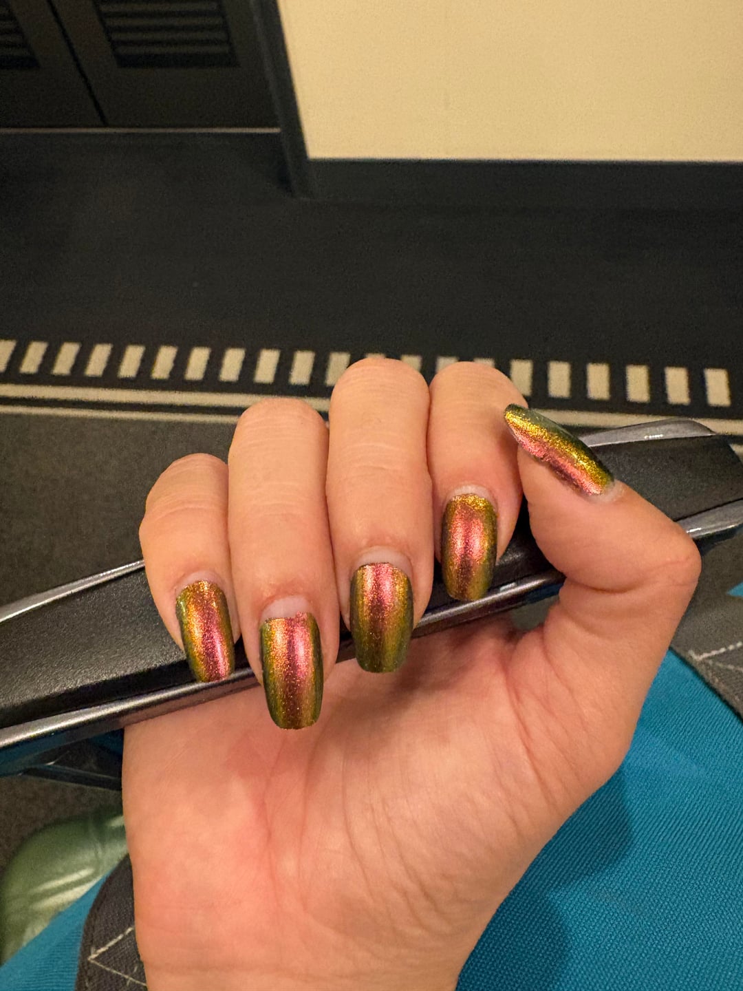 Coming from someone who is currently changing their manicure every 3 days, this was a record! I went to Japan for two weeks and didnt want to pack my nail polish so I was determined to get some longevity. And boy did I! I picked at my cuticles a tiny bit but second photo is after two weeks of growing out and almost no chips.