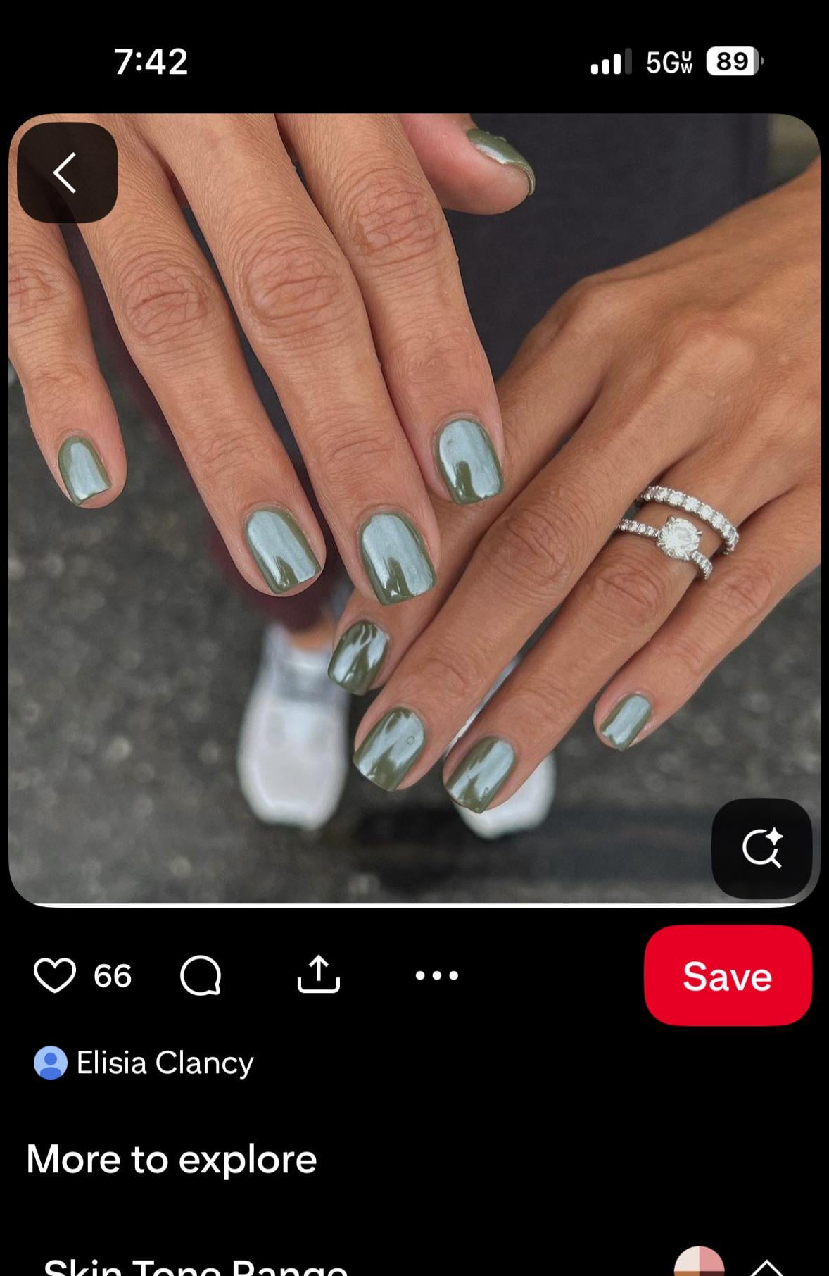 ireallyloveepickles on March 4, 2026 12:50 pm Get an olive/khaki green polish and then chrome powder and you’ll be pretty close to this!