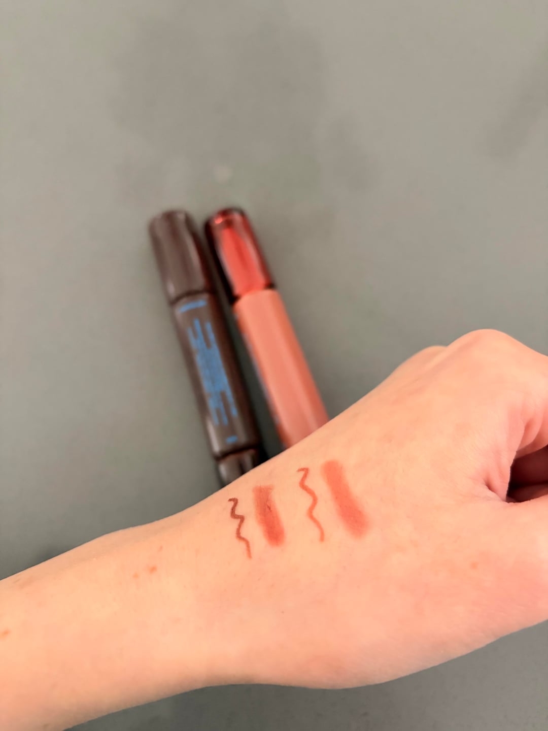 Swatched on the last 2 photos. The last pic is where I rubbed at it to test the lasting power. Seems the lip liner is very long-lasting compared with the lipstick end. The liner stayed on the back of my hand all day too even when washing my hands a lot 😂
