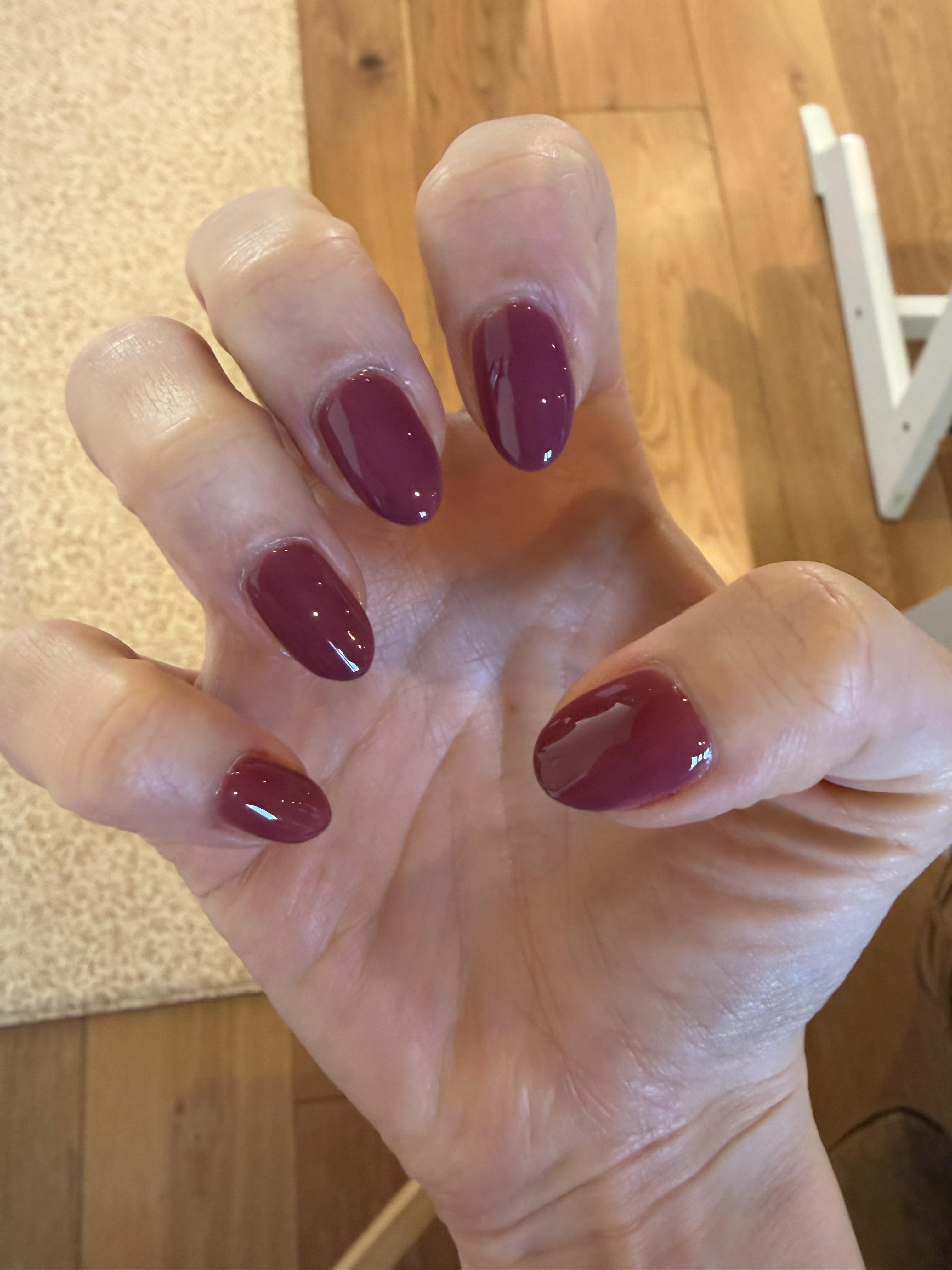 … but my brain reeeeeeally wants to 2 coats Essie to the Rescue, 3 coats Cirque Marsala Jelly, Sally Hansen red bottle QDTC by Goldfinch114