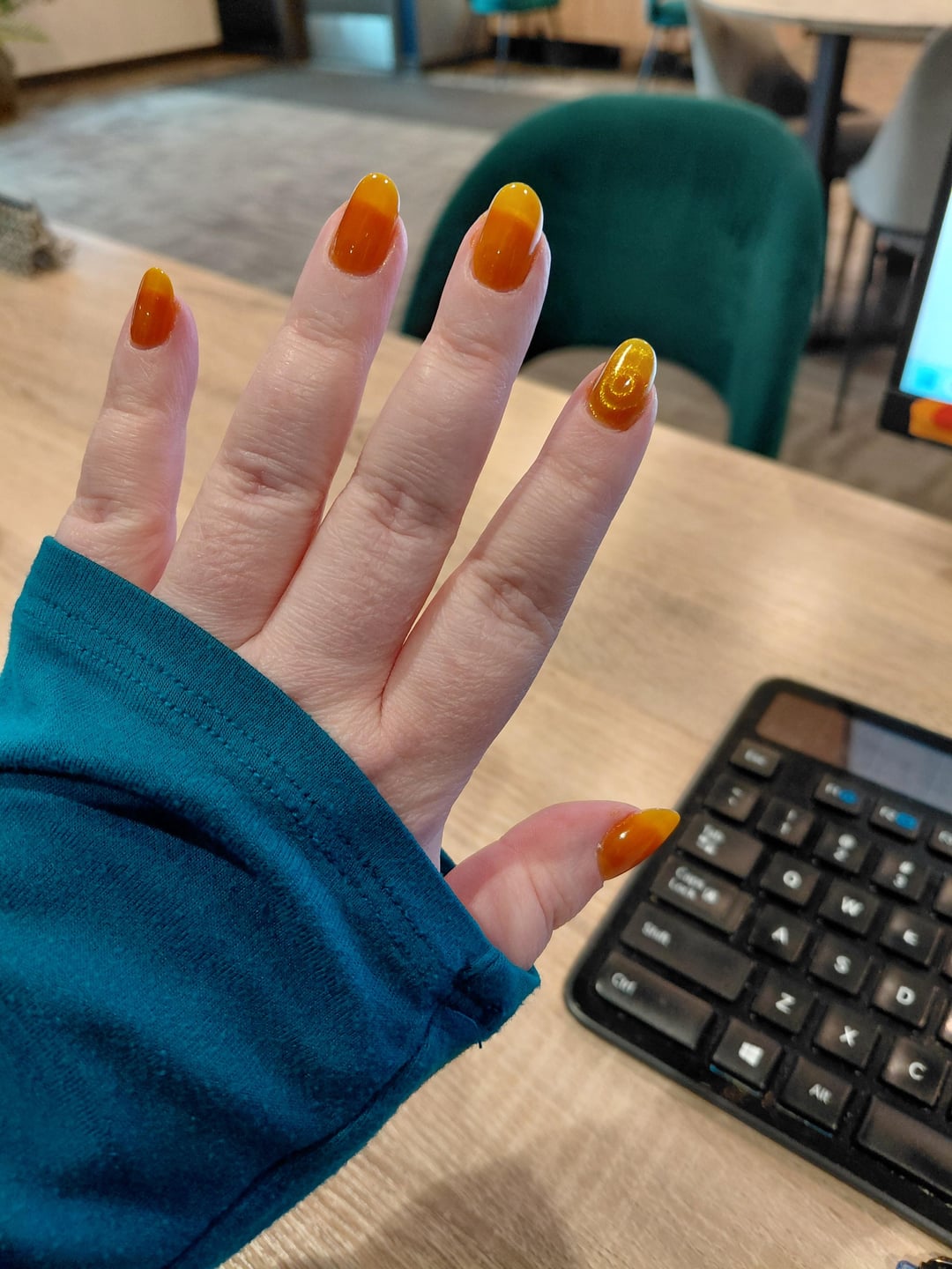 I usually can't stand having the same color on all of my nails, it's too boring and I want some excitement. But I just got Cracked's Hot Honey and I love it so much all of my nails are the same color for the first time in probably 20 years. It's such a weird and interesting color and it's so squishy and shiny! I did add a magnetic top coat to a couple nails just for a little razzle dazzle but I may have been able to do without it. Wear the weird color, you might find a new favorite.