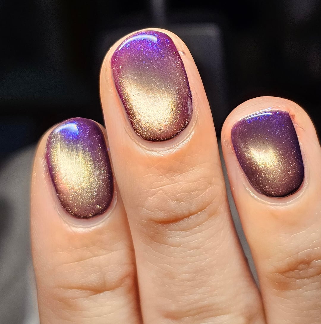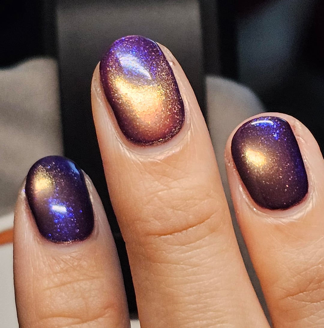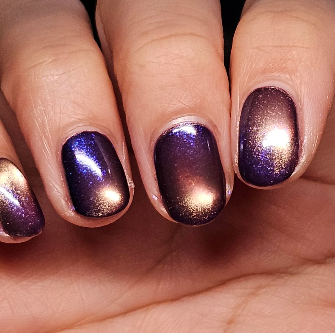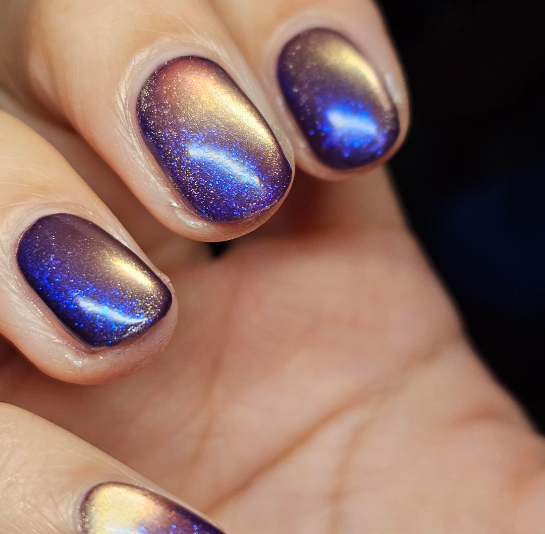 It took me a whiile to try this one on as a mani because I was struggling to figure out the glassbead. Now thanks to a fellow redditor for sharing their set up, I can finally see my magnetics at the light they almost deserve. Is that dramatic🫣? Anyway, now that that's down, my next tackle is the top coat. The last four are the ones with top coat, there are more visable brush strokes.