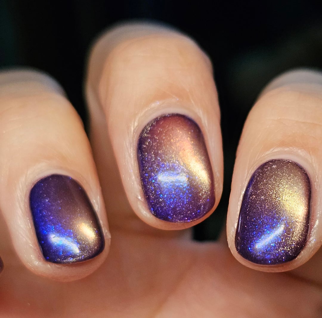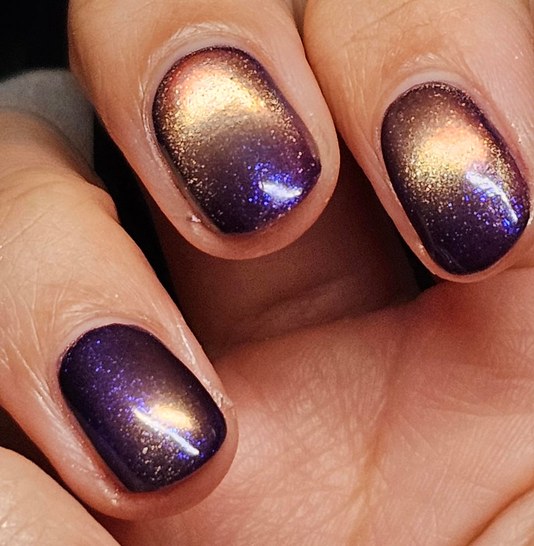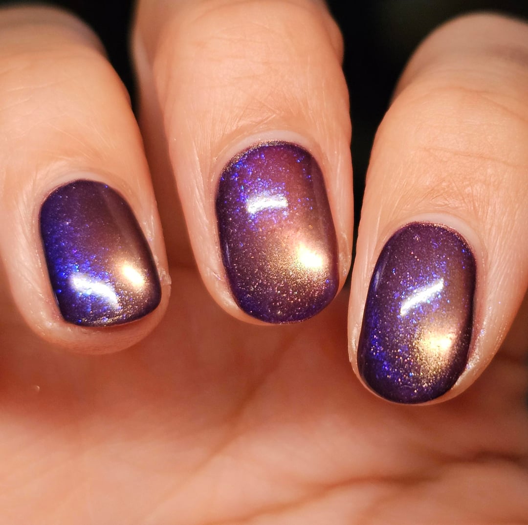 It took me a whiile to try this one on as a mani because I was struggling to figure out the glassbead. Now thanks to a fellow redditor for sharing their set up, I can finally see my magnetics at the light they almost deserve. Is that dramatic🫣? Anyway, now that that's down, my next tackle is the top coat. The last four are the ones with top coat, there are more visable brush strokes.
