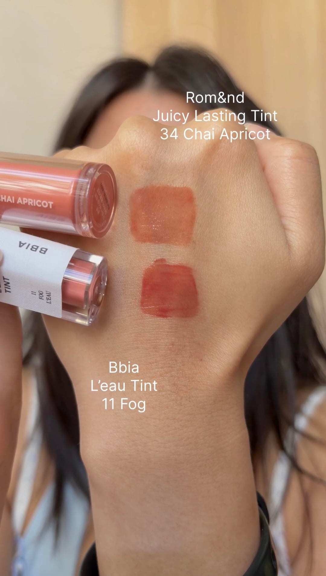 Hey y’all, today I compared Rom&nd Juicy Lasting Tint 34 Chai Apricot and Bbia L’eau Tint 11 Fog Leau on my light medium warm skin tone.