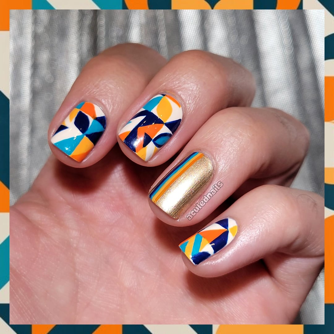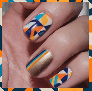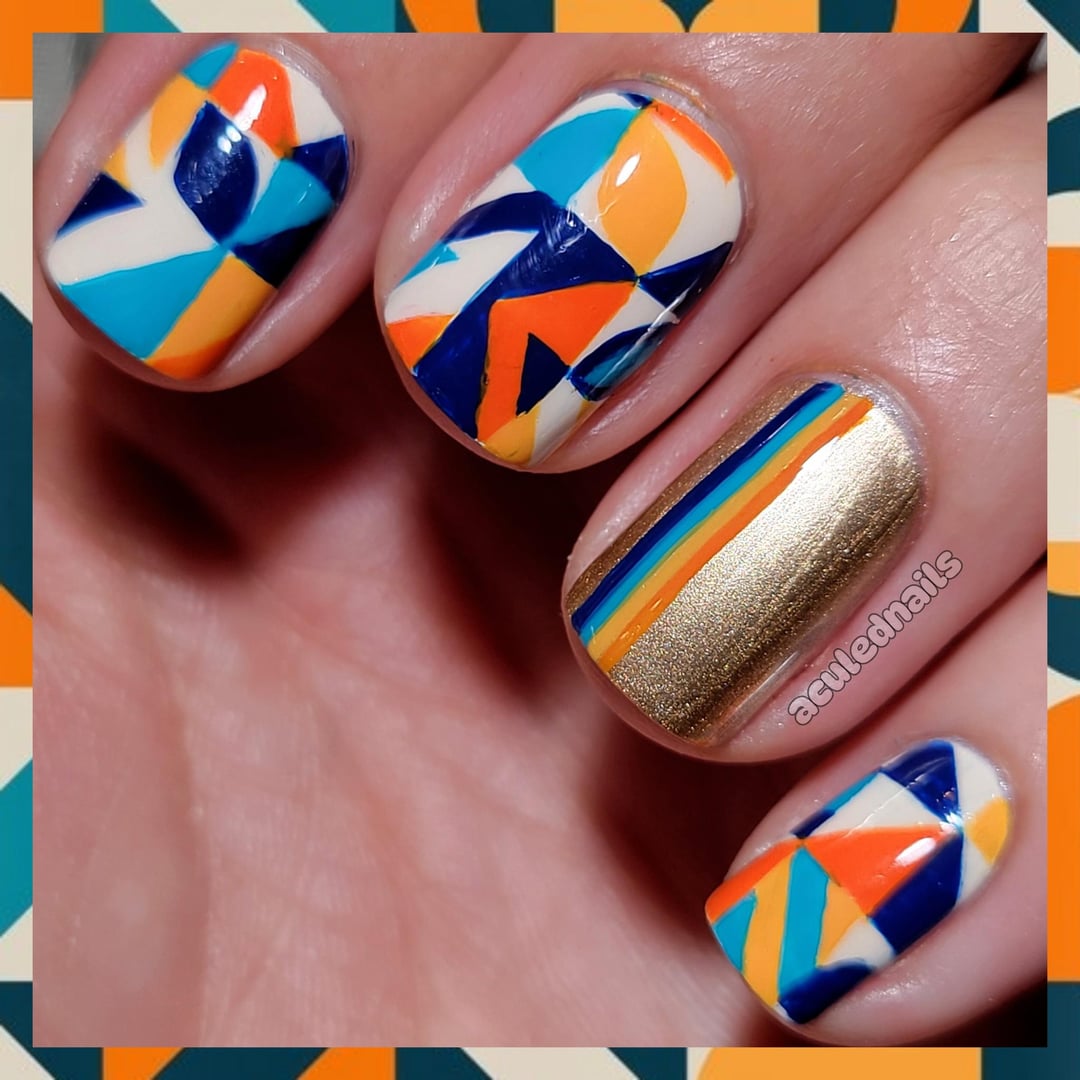 The Bauhaus Art movement was part of the cultural shift in Germany between WWI and the Great Depression. Embracing and creating modern styles in art and architecture was right along side the center of western philosophy, intellectualism, theexpansion and blending of gender roles, fashion, jazz, and so much more…all coming to an end with the Great Depression and rise of fascism. The art style in its most basic form was centered on combining expression with manufacturing and function. Geometric clean lines, contrasting and vibrant coloring, round edges and clean lines in furniture, buildings, and even fonts used. We've all seen examples in your Doctors office lobby, and I had passed one at school that sparked my manicure mind, especiallywith the color pallette. Are there stamping plates for these styles? Absolutely. Did I have an edible and hyperfocus like a madman, freehanding these at midnight instead? Absolutely. 😝