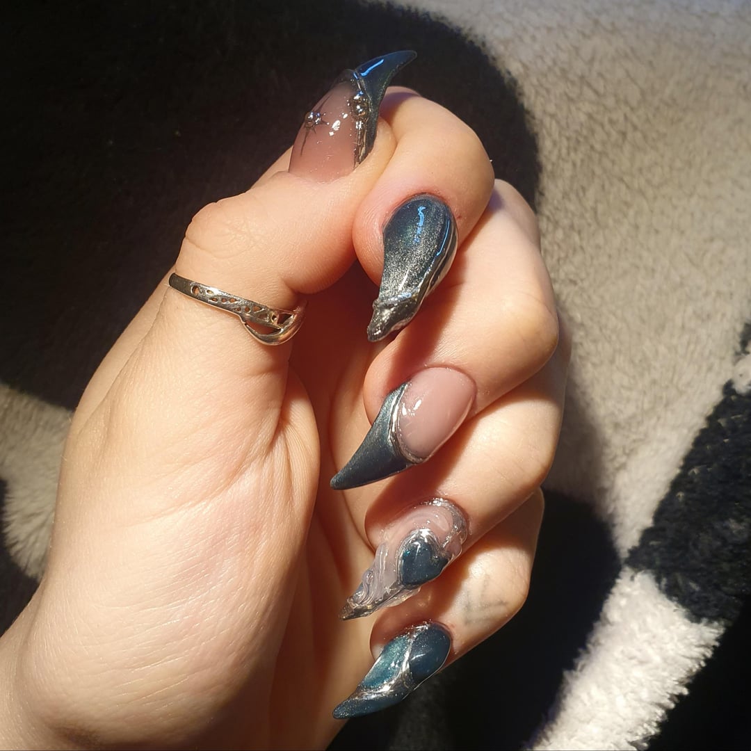 I love them, but I'd give myself serious injuries if i kept them clean an sharp like in pic 4! So nail art it is, what do you think of the combination, creepy claws × classic nail art? by y-tho-