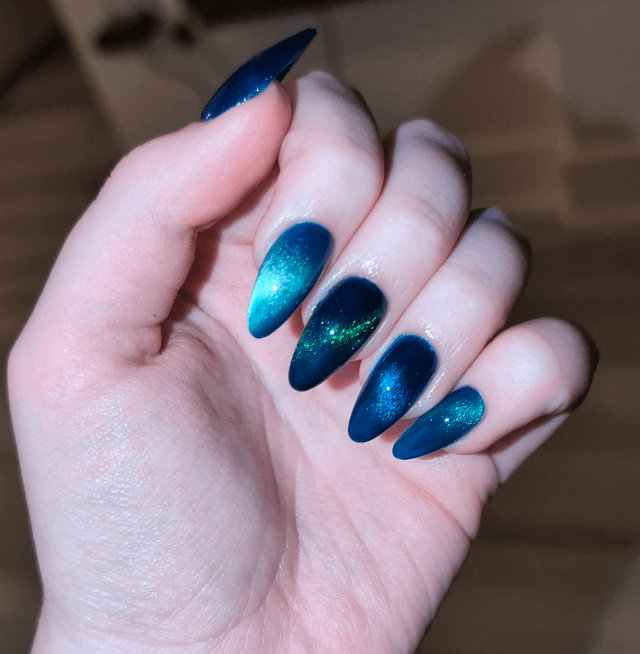 Ignore my heavy hand with the cuticle oil but oh my gosh the dnd cat eye gel is soooo worth it 😭