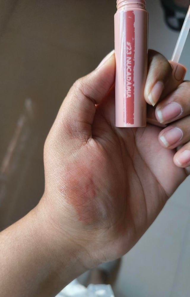 Barely could swatch the shade, I completely ran out of the Rom&nd juicy lasting tint in the shade nucademia, this is the second lip tint I’ve panned in my whole collection, few more lip tints are on the way to be panned completely !