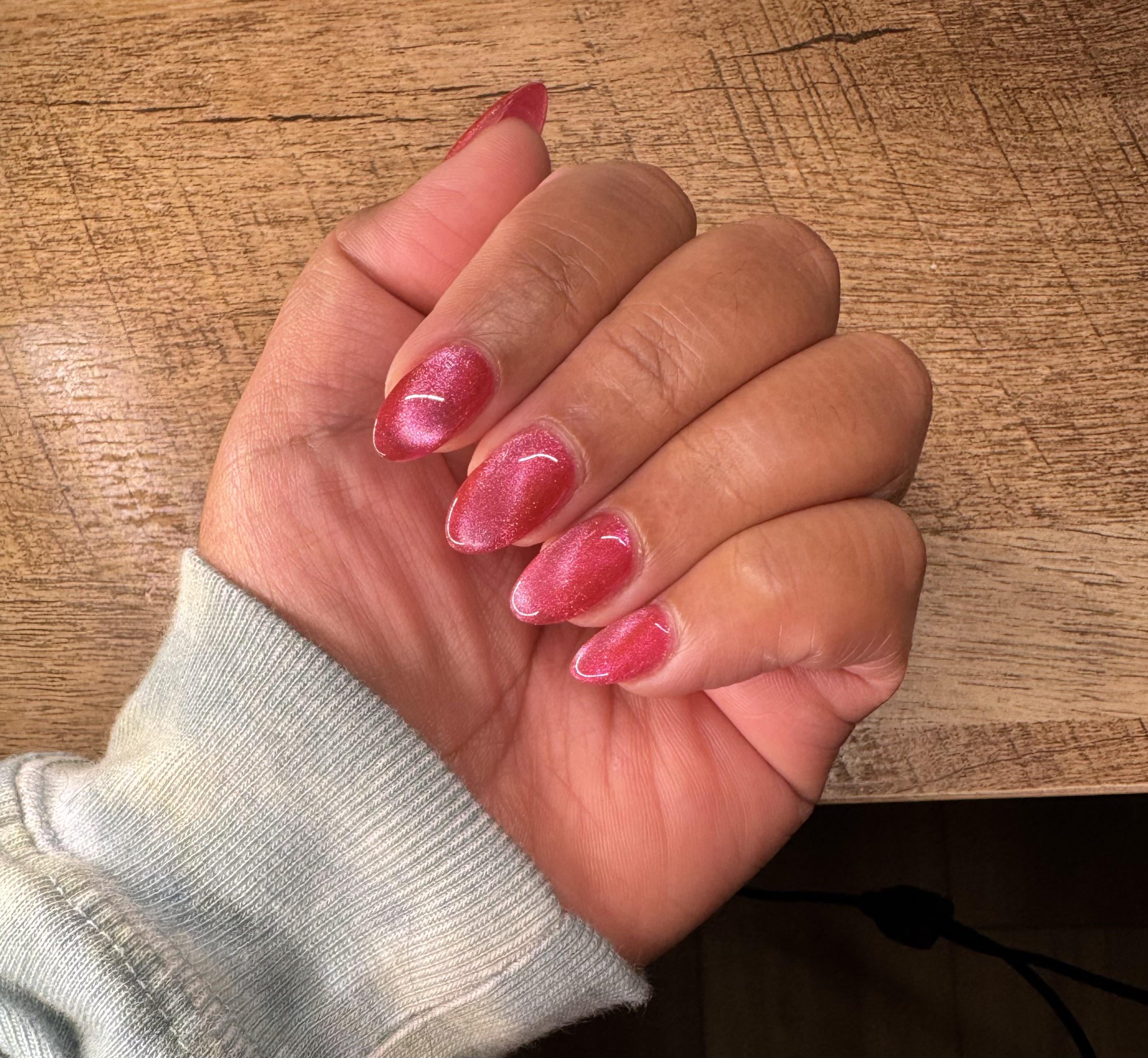 The sunny weather made me feel like a mini pamper session after work. Since it was a spontaneous idea I couldn’t get in to see my usual girl. I didn’t have any nail art in mind but fell in love with this shade of pink and got cat eye. Definitely shorter than I usually get but I wanted something easy to work with. Very happy with how they came out.