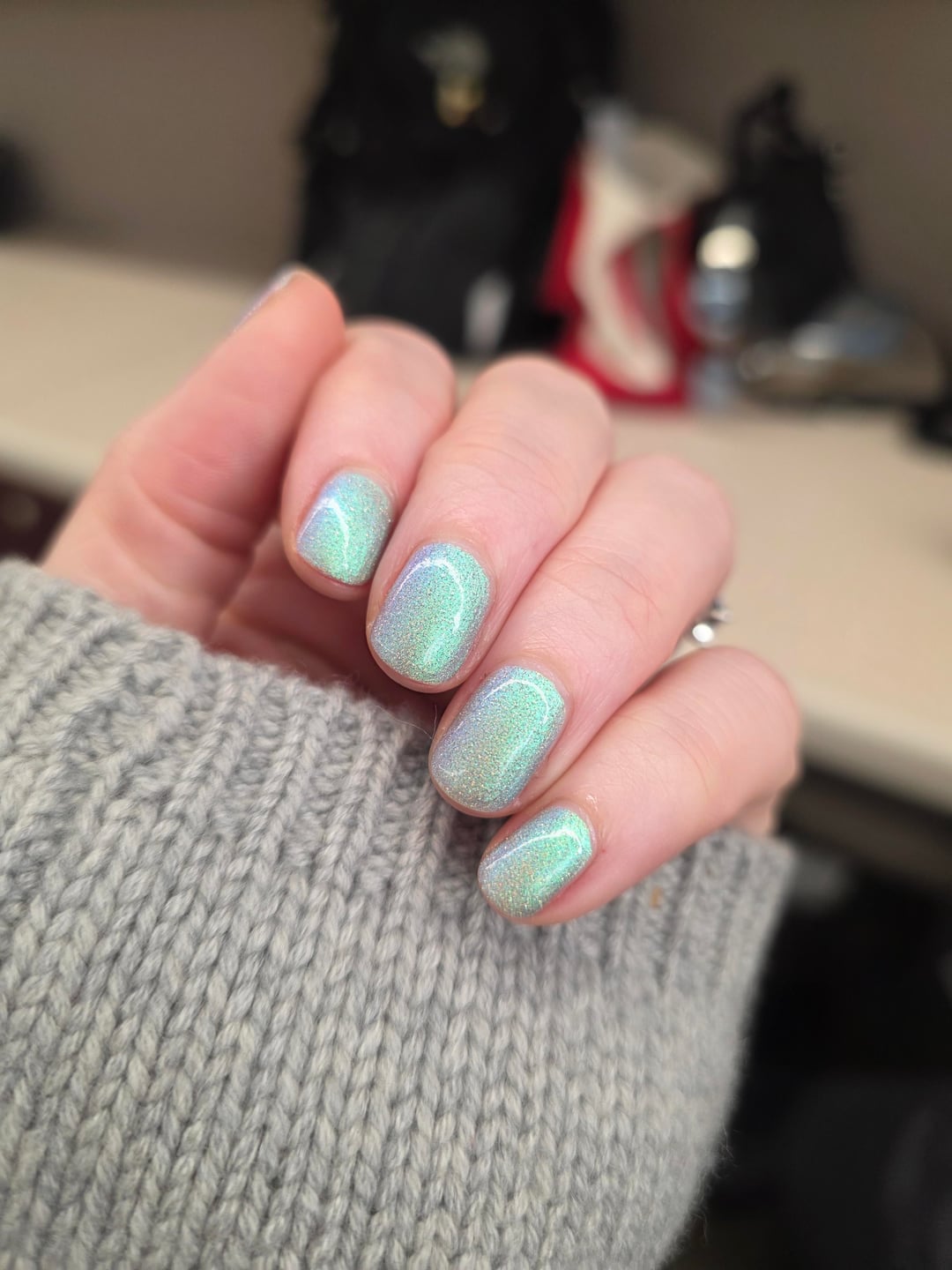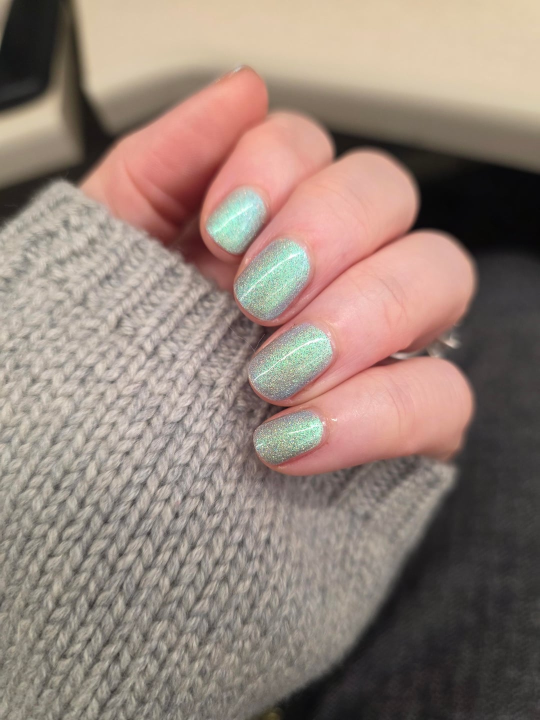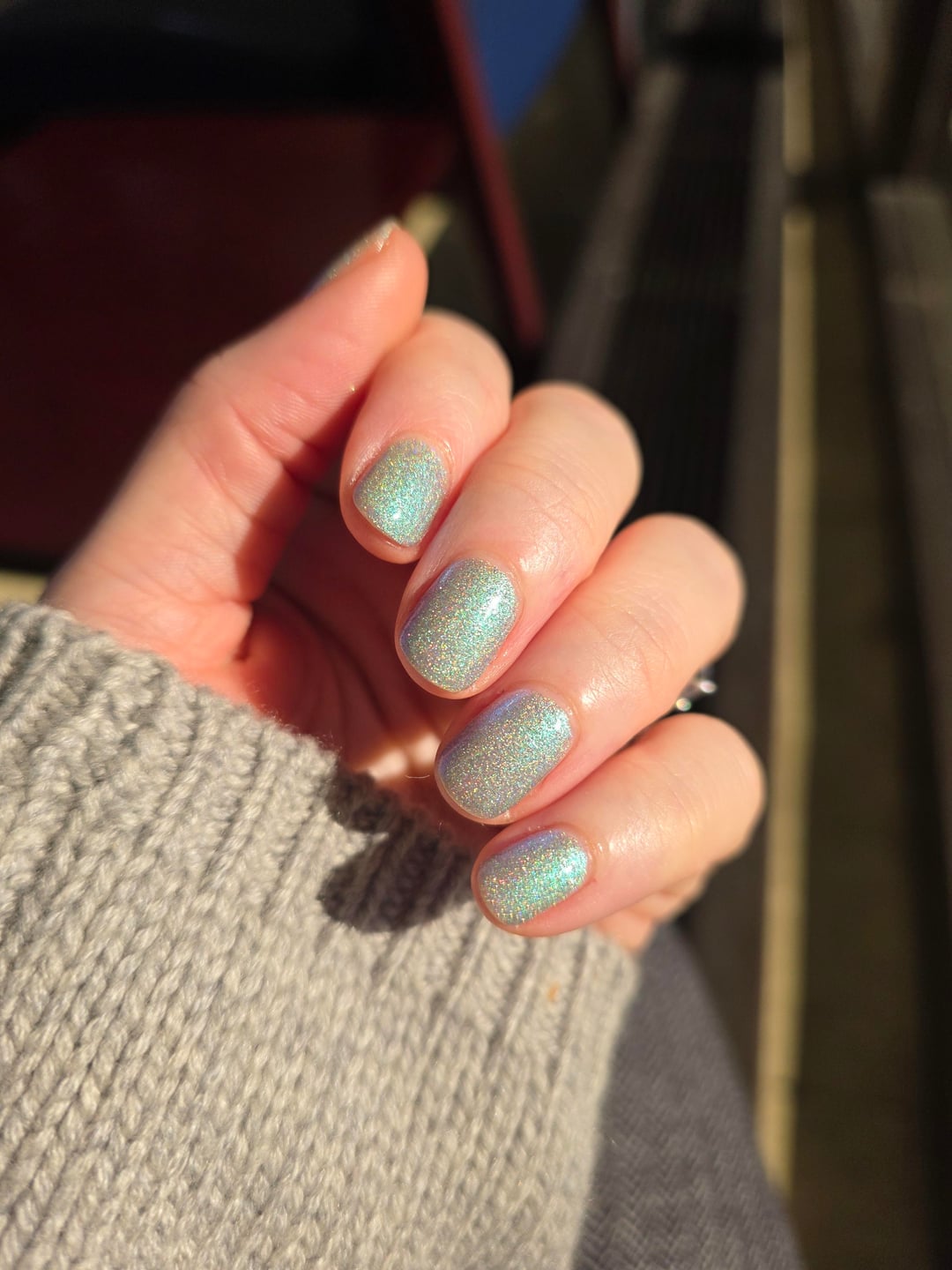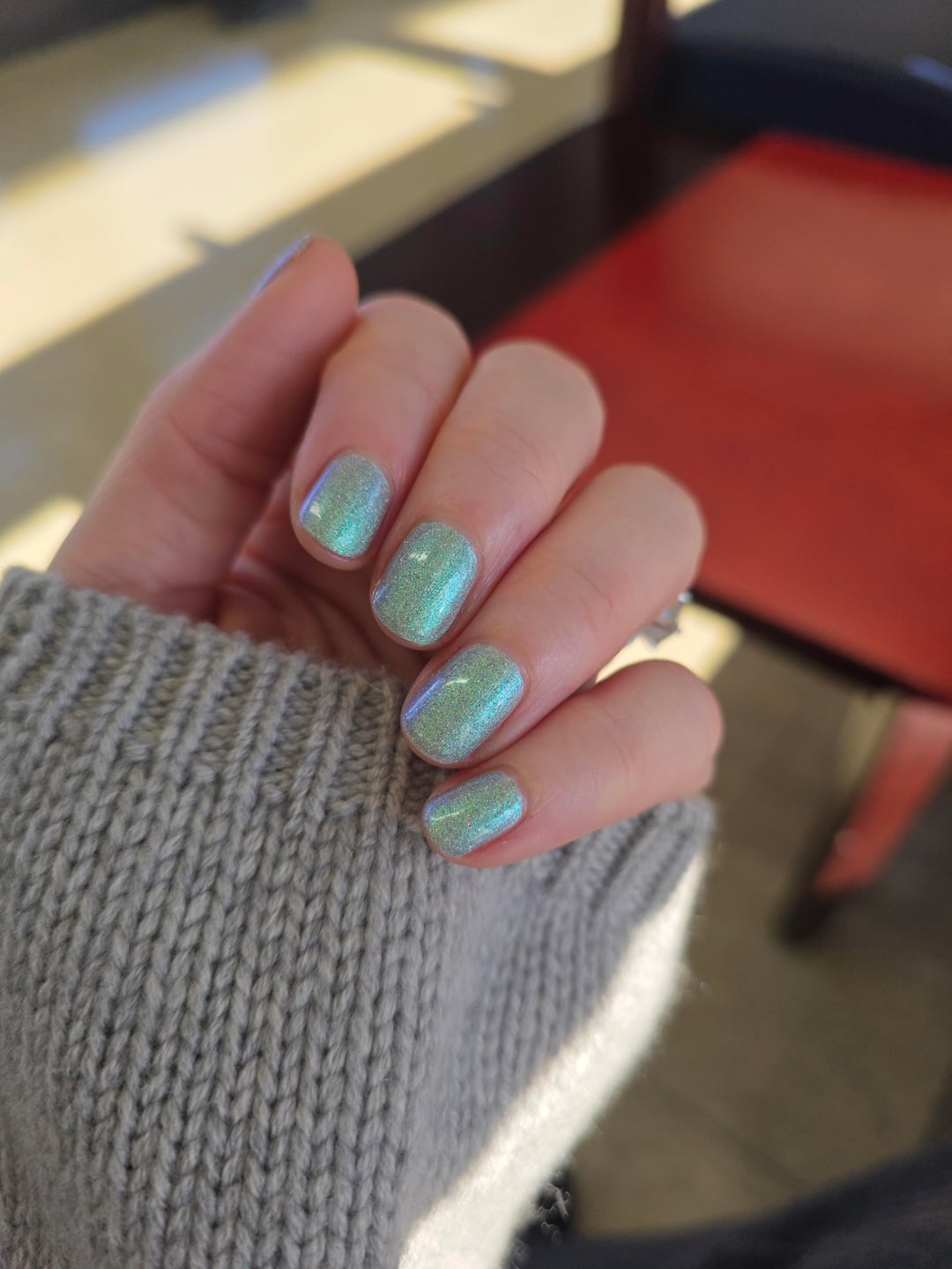 I love the finish on this one. It has a beautiful blue shirt at certain angles that is super hard to capture & the reflective and holo glitter in here just SPARKLES. Very happy with this and happy to do a quick mani that’s not magnetic LOL 😂🤦🏻‍♀️ forgot how quick it is to do regular polish.