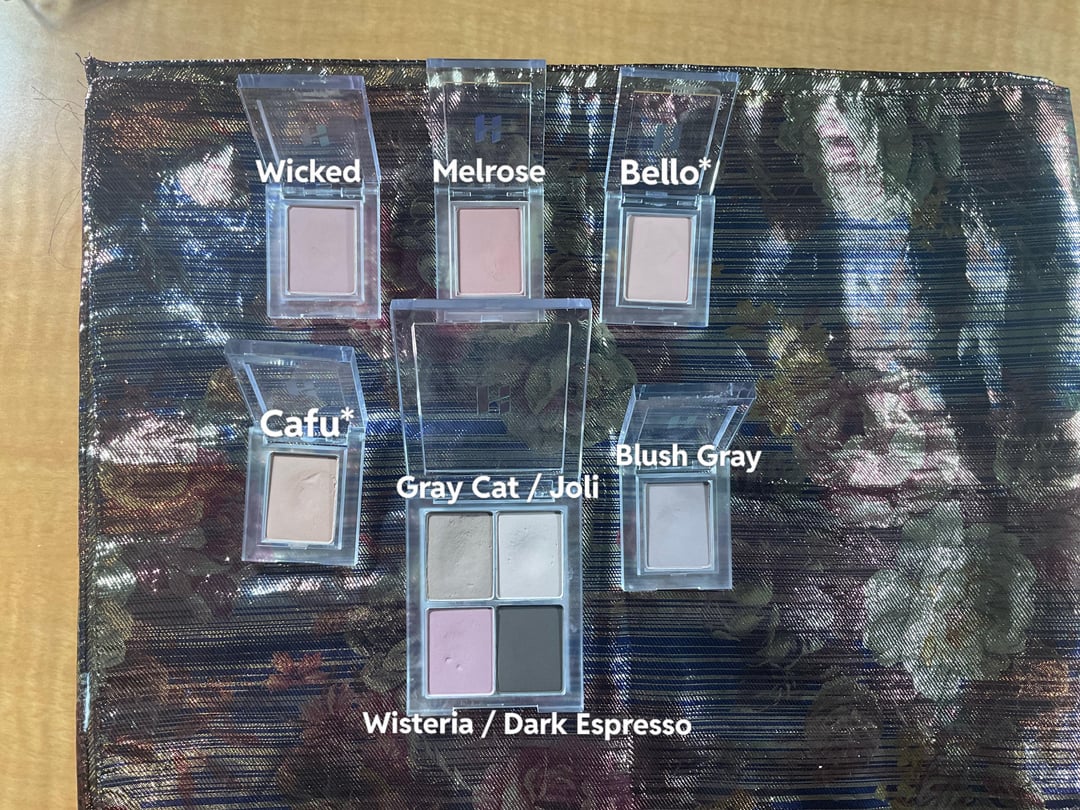 Hello again! I’ve come back with the rest of my AB eyeshadow collection (first post had all my rom&nd palettes). Swatches are taken under indirect harsh white lighting,,,, thank you to my desk lamps,, I lean neutral/cool(?) and use Jung Saem Mool 21 Medium and Unleashia Don’t Touch Glass Pink Cushion in 25N!