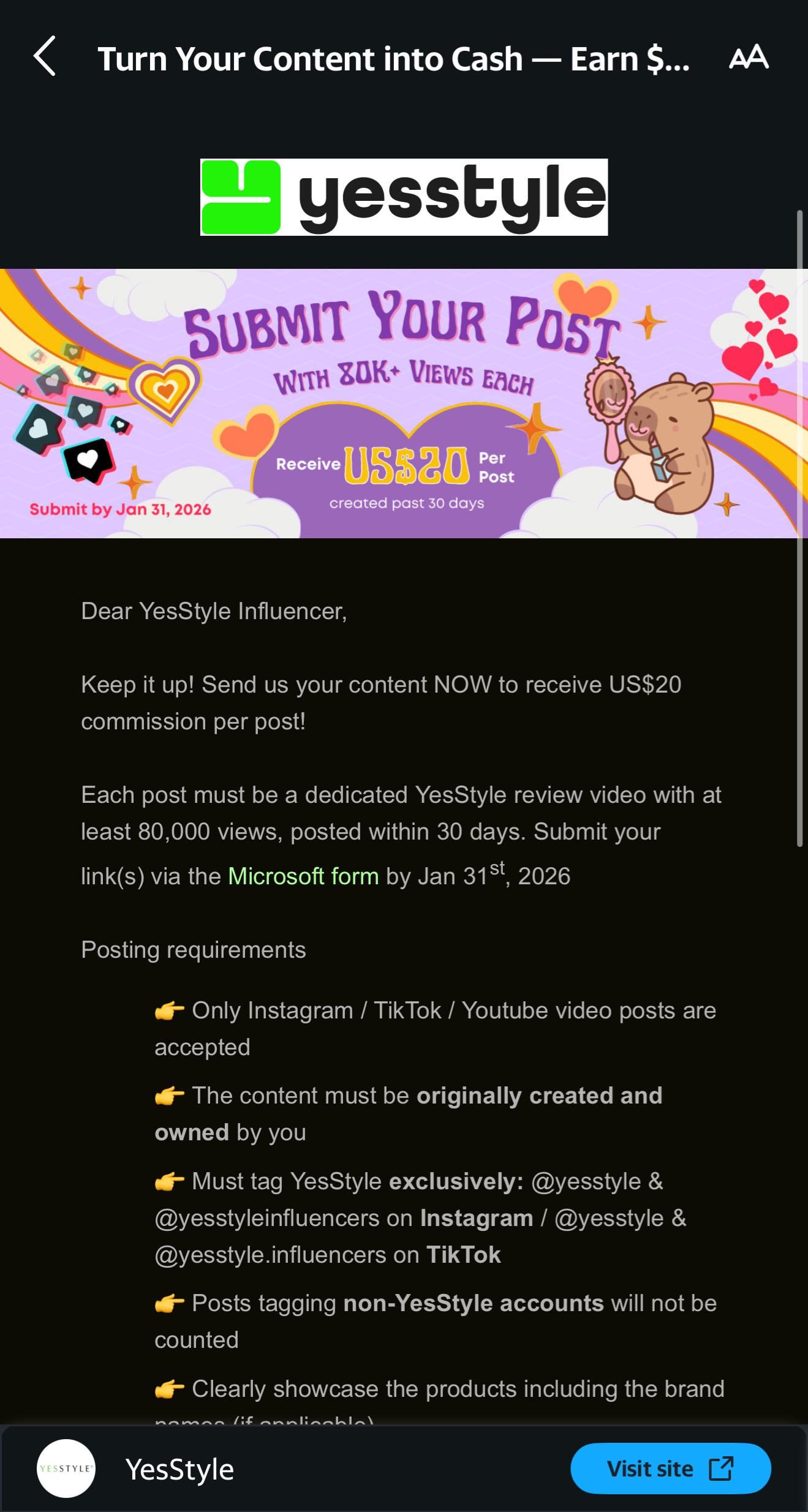 Have you joined this campaign on YesStyle ? I have some questions about this.
