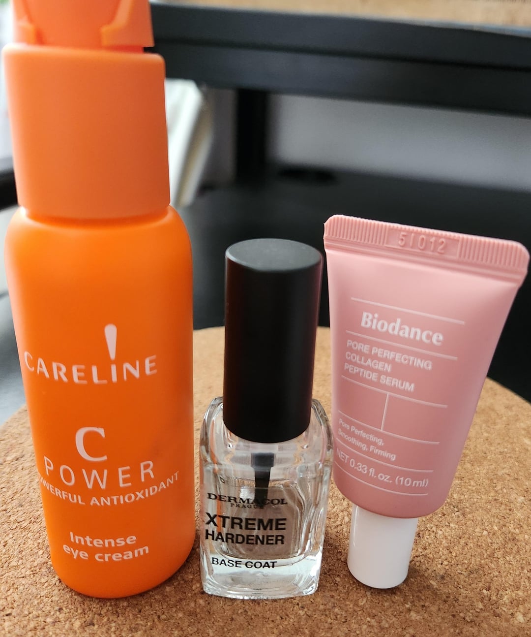 Products: -Careline c power eye cream -Dermacol xtreme hardener base coat -Biodance collagen peptide serum by maybe_lucifer