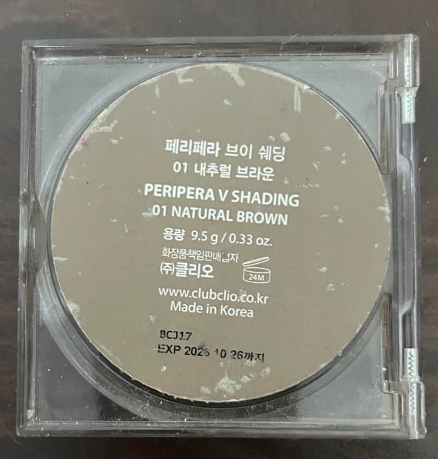 Product? Peripera V Shading in 01 Natural Brown! I’ve had this for 2.5 years, used it almost every school day, and has been with me to various places (hence the scuff marks and obvious wear). It’s actually been panned for a while now, I just got the opportunity to post it now, the packaging is sturdy! I tend to be *very* clumsy, which means that I drop things and knock items over almost on a daily basis. I’m surprised the hinge didn’t break at all 😭