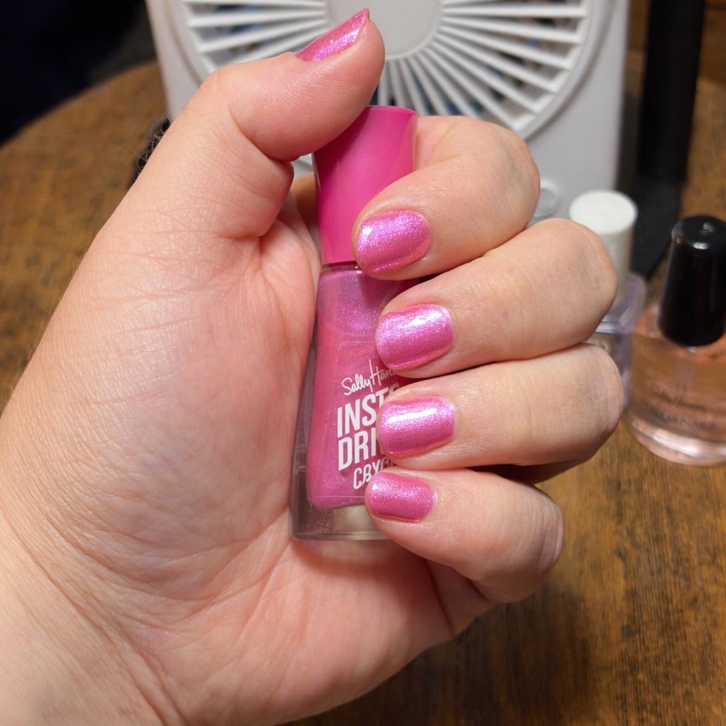 My birthday is tomorrow and I wanted pretty pink nails for the occasion. At this point I’ve accepted that I need the forgiving nature of shimmers, glitters, and other effects. Once again, Sally Hansen delivered.