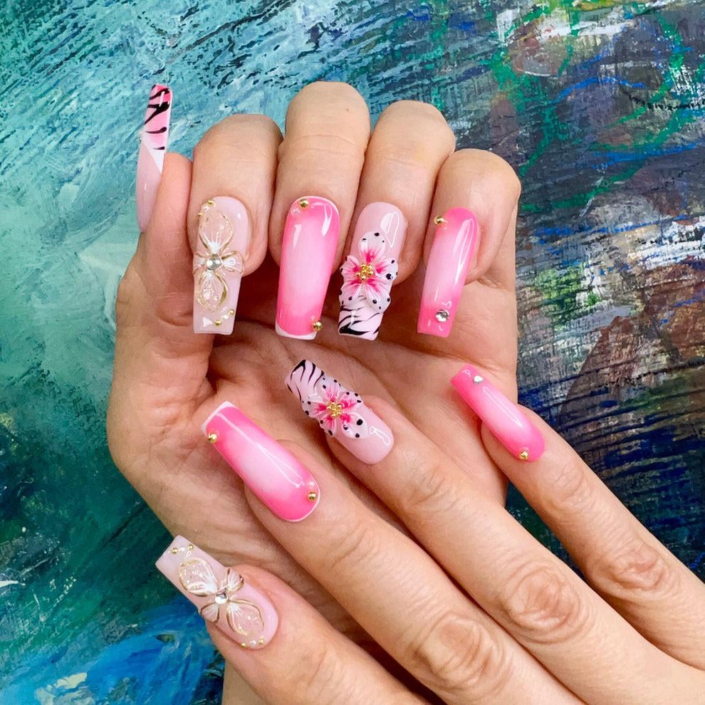 Pink flower nails