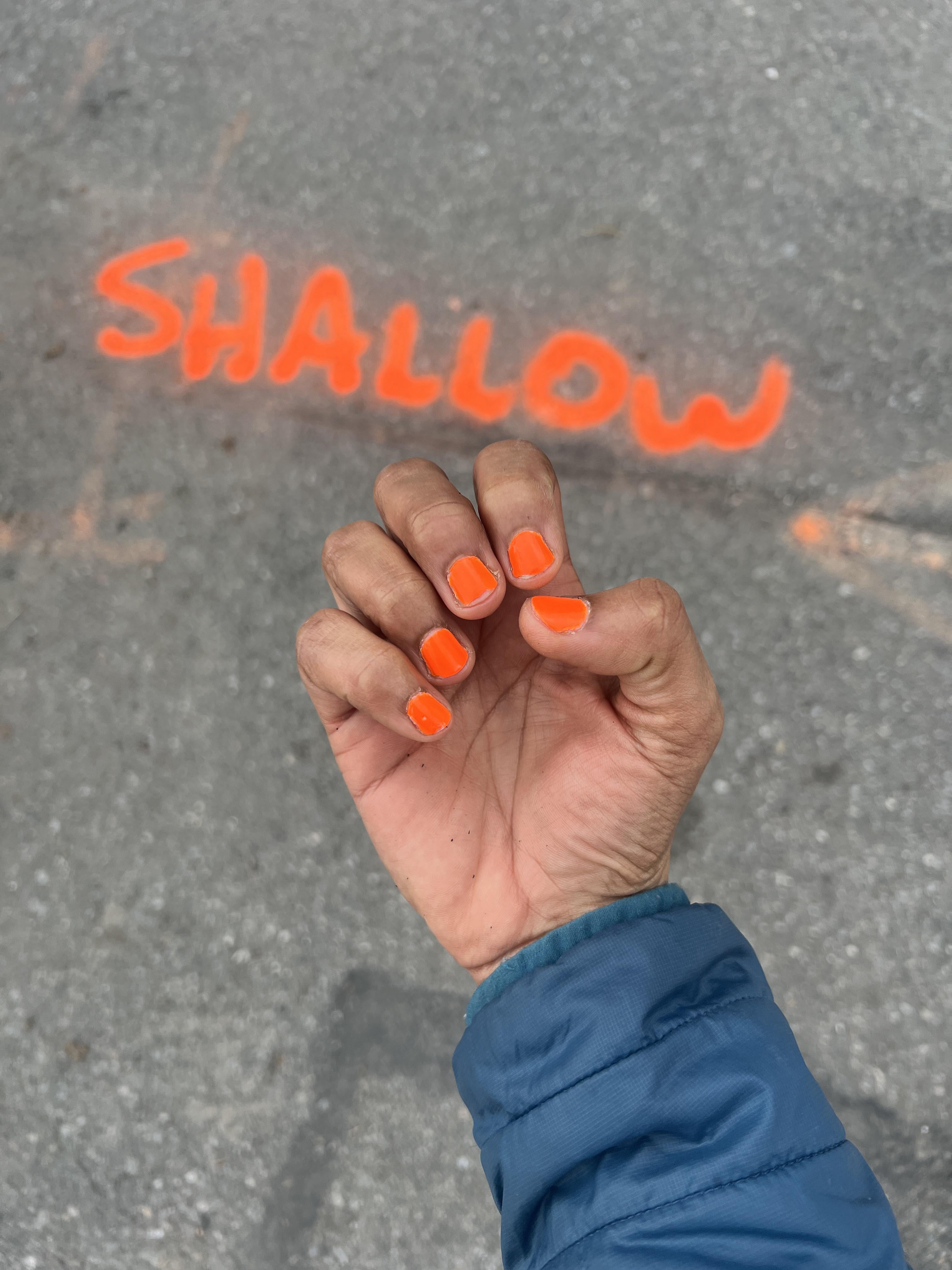 My nails match this construction marking on the asphalt! Color Vibe (the “with hardeners” line) Haute Hot from Dollar Tree by curlycomedy