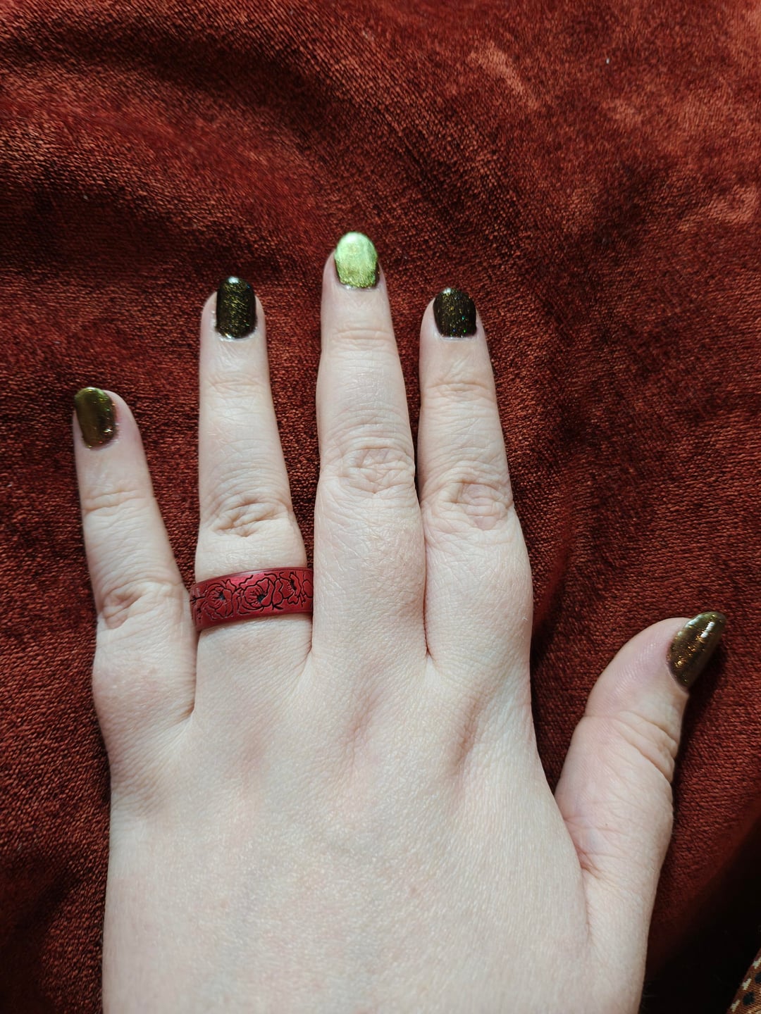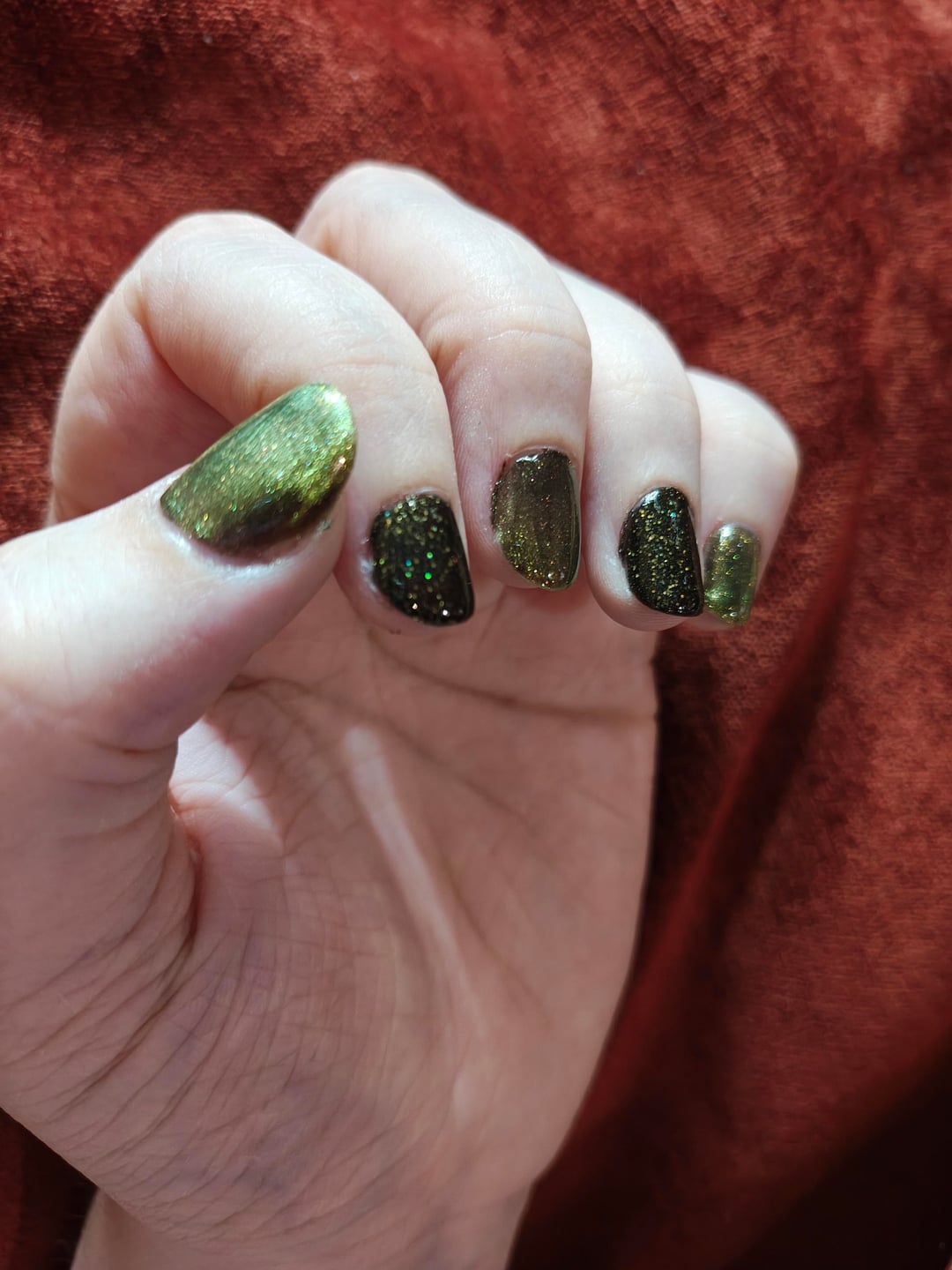 Sorry for the photos, it's hard to photograph velvetized magnetic polish ðŸ˜