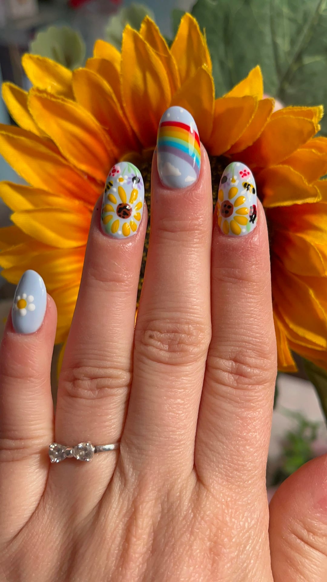 I’m so in love with my spring nails! πŸ₯ΉπŸŒ»πŸͺ»πŸŒΈπŸπŸŒˆβ˜οΈπŸž