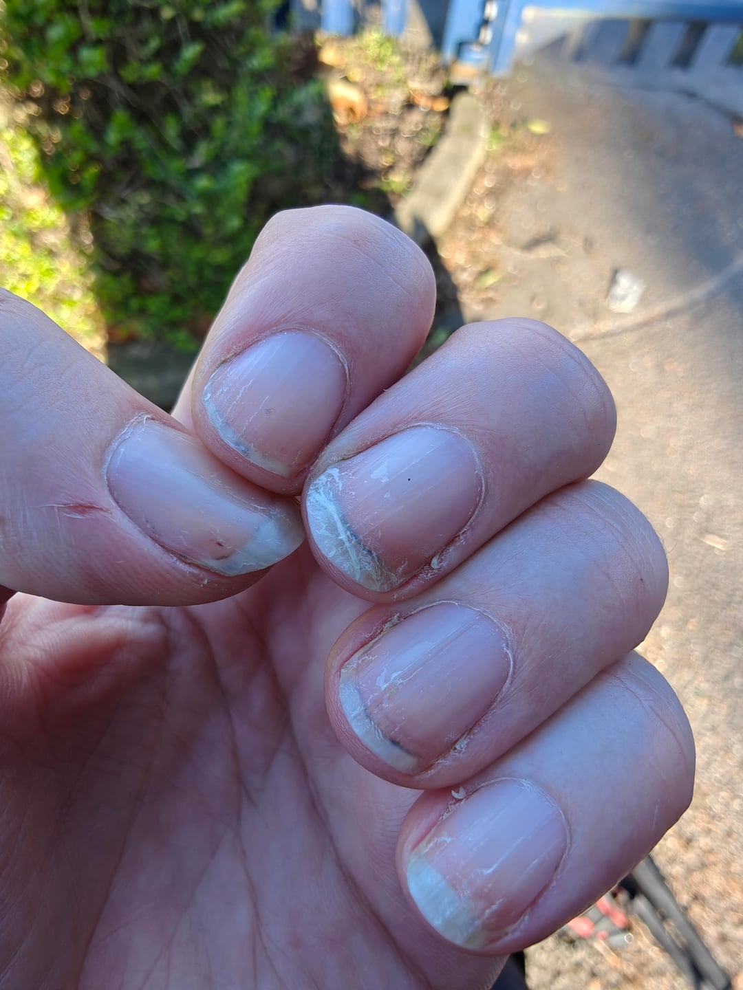 This, friends, is why you do not do manual labour with bare nails! Every last one of them is done for 😭 guess I'm starting again today. It's been months since I didn't put polish on again straightaway and I am paying for my lack of spoons.