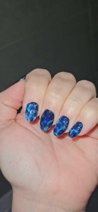 Aiming for a sunlight on water effect, using cat-eye and blue jelly. Self-taught, usually I don't like bright colours but these are growing on me. by SortOfScreechOwl