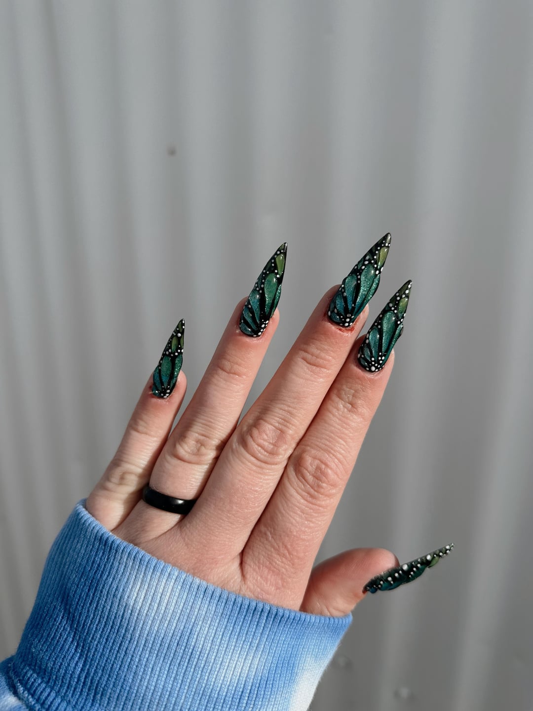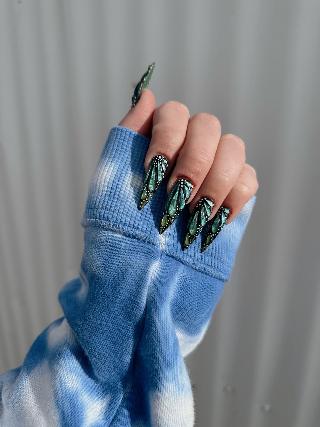 Gel-x with three colors of cat-eye gel, plus nail glue gel for the 3D effects 💙