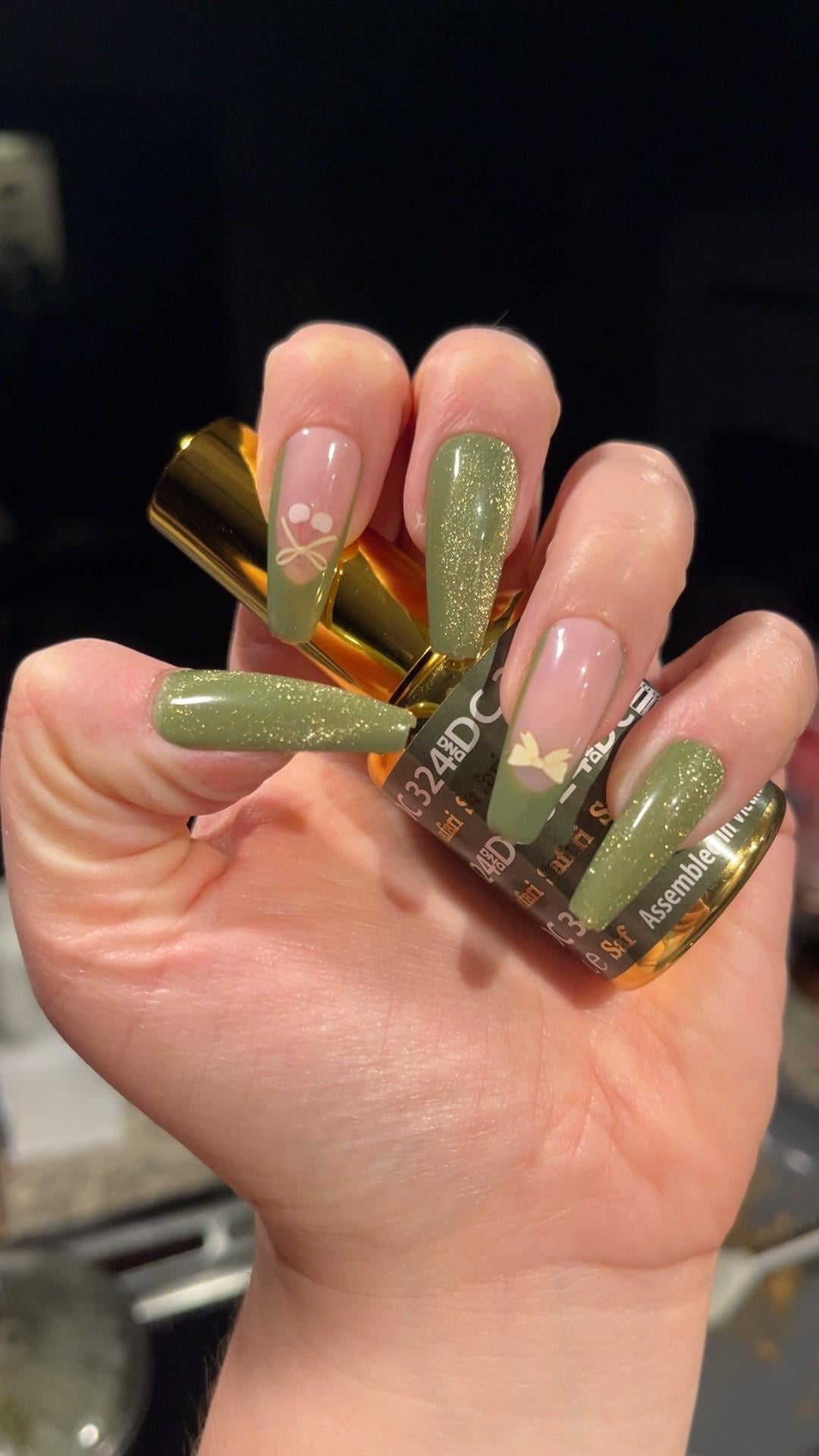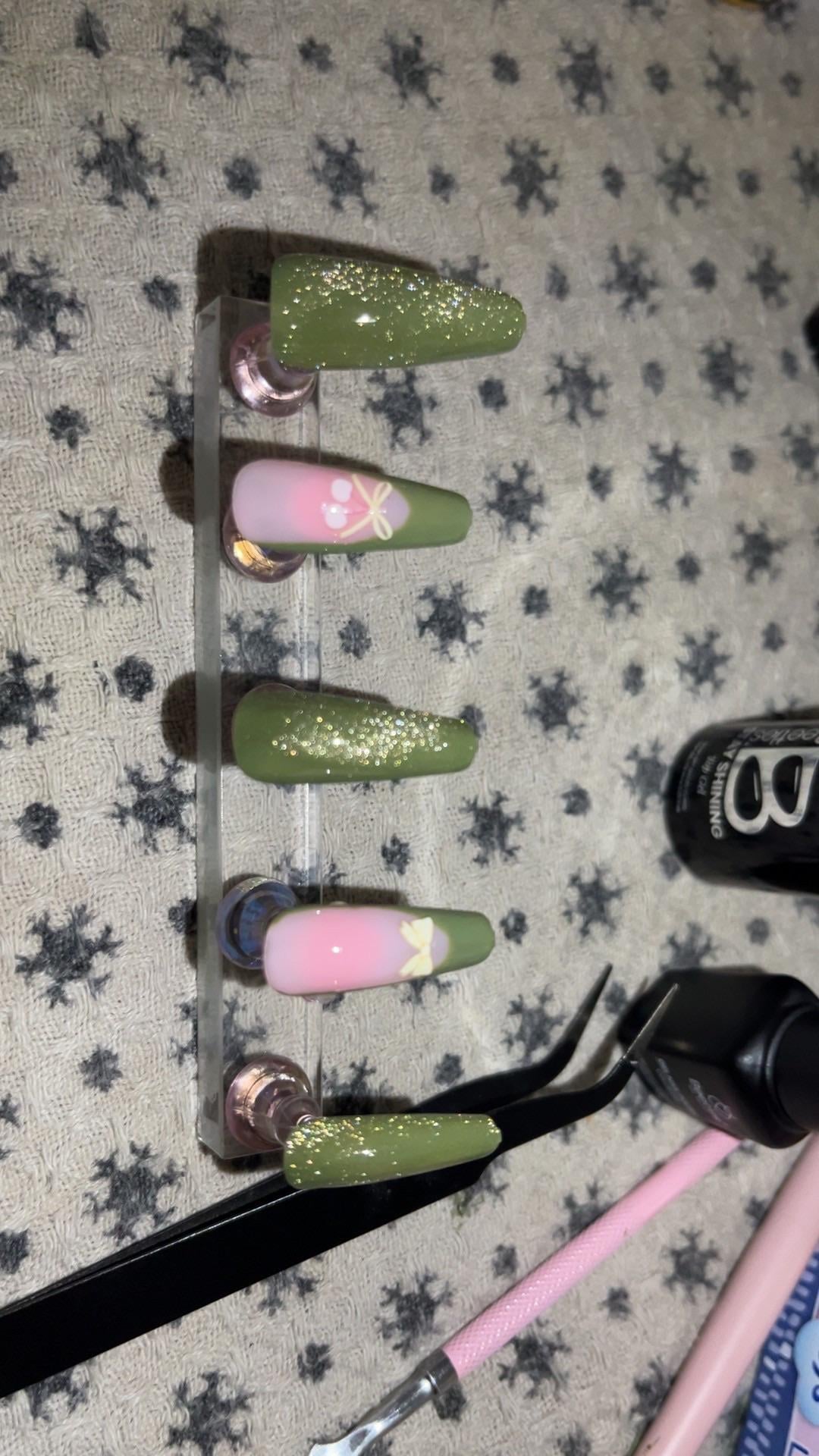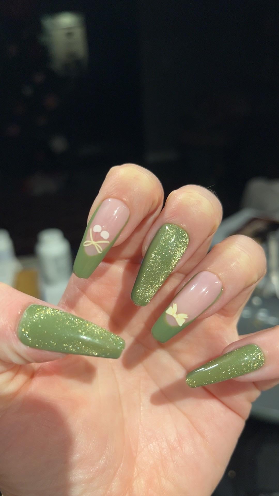 My first time doing cat eye and painting my own frenchies! (The bows are stickers) by thescorpiotarot-ess