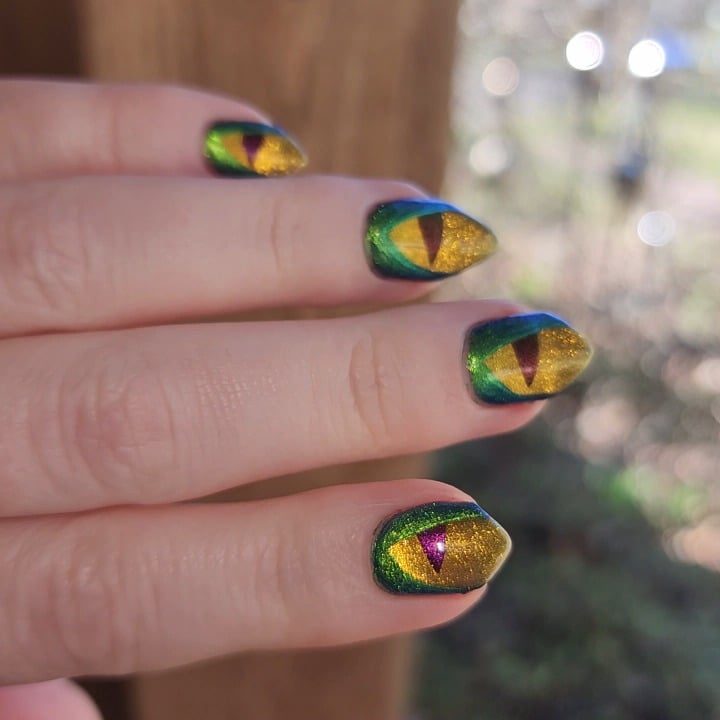 i would honestly believe that the green was like, an actual little wrap. i mean, it LITERALLY looks like it wraps around the pupils, it’s insane!