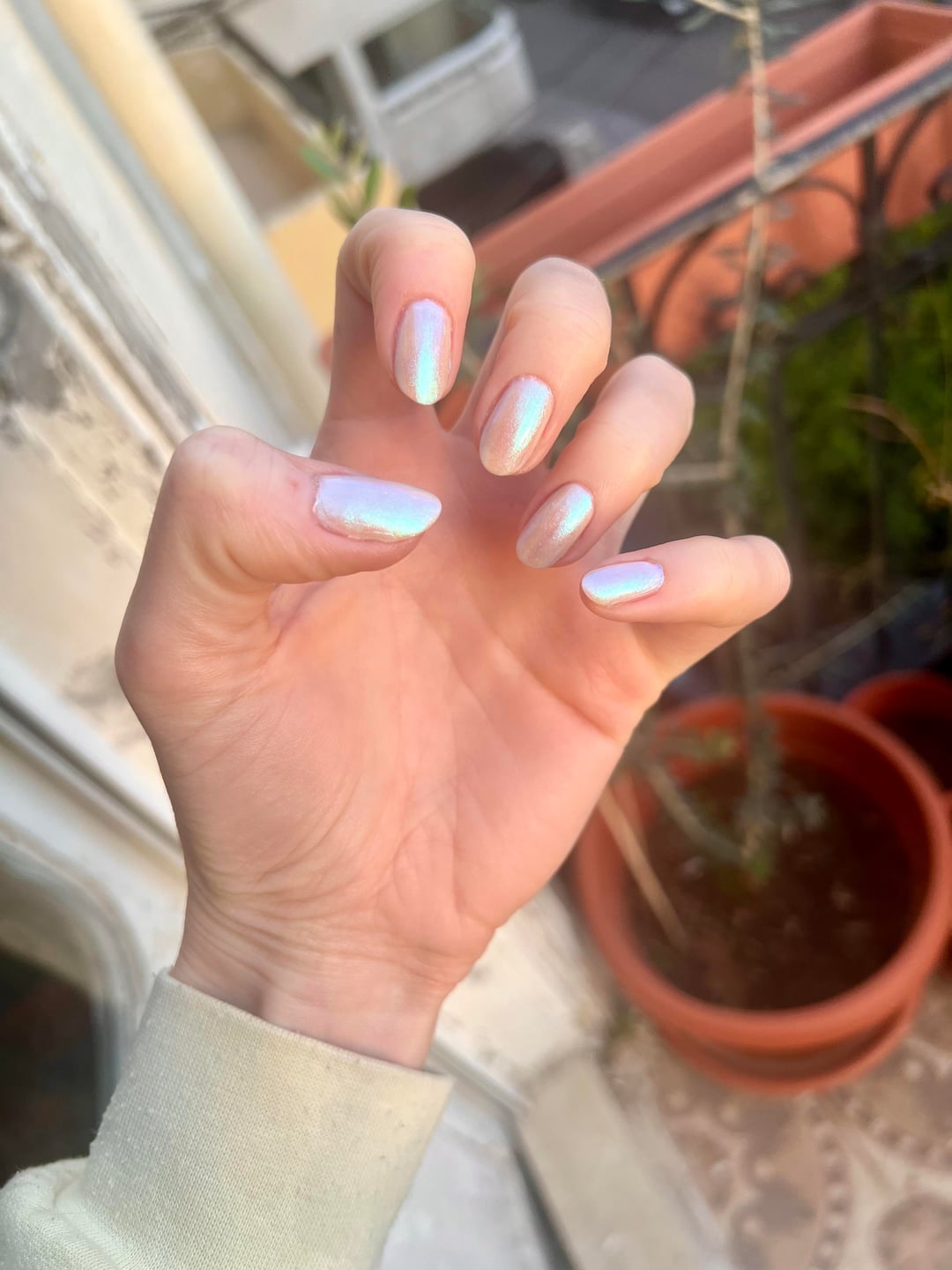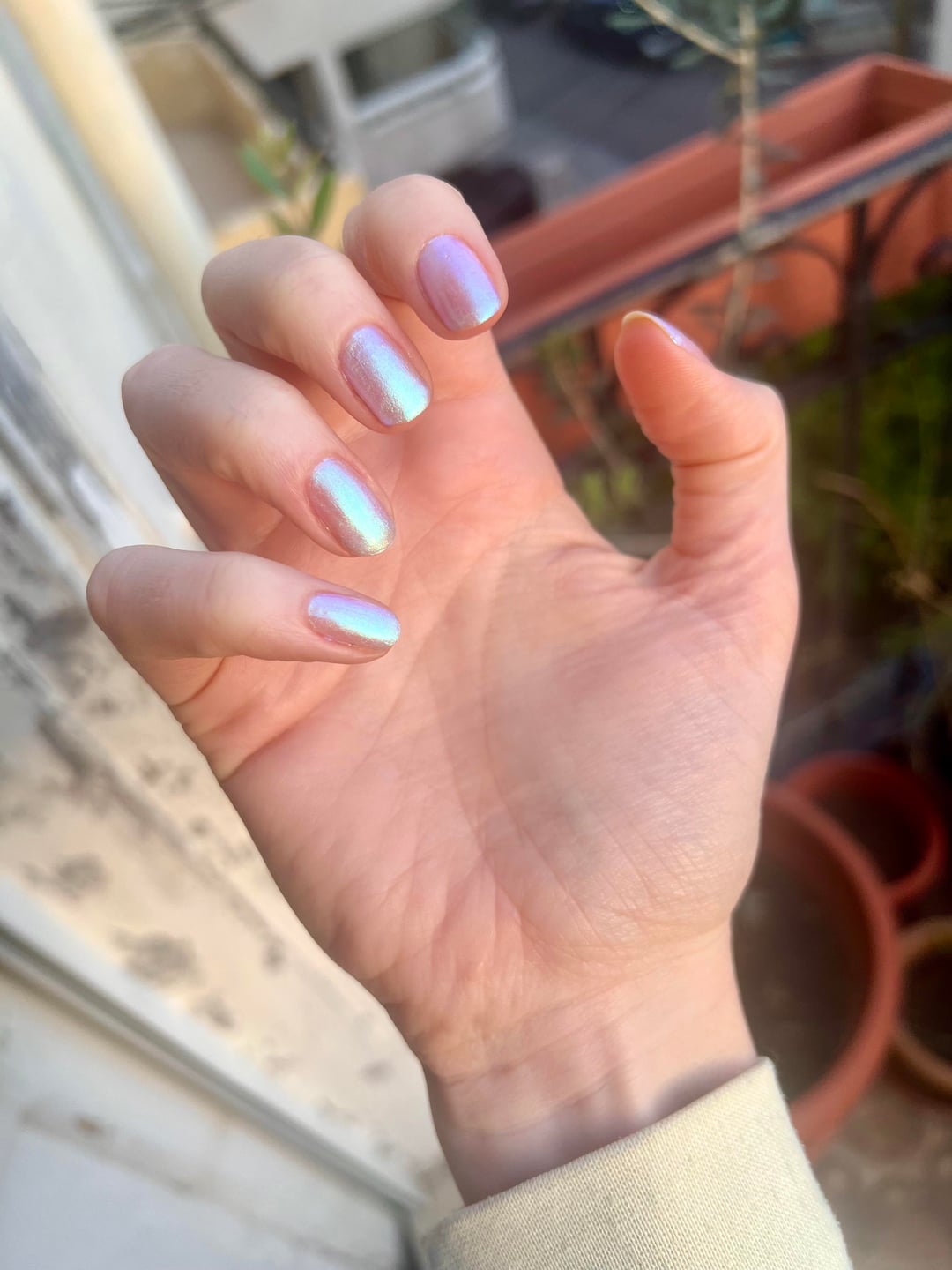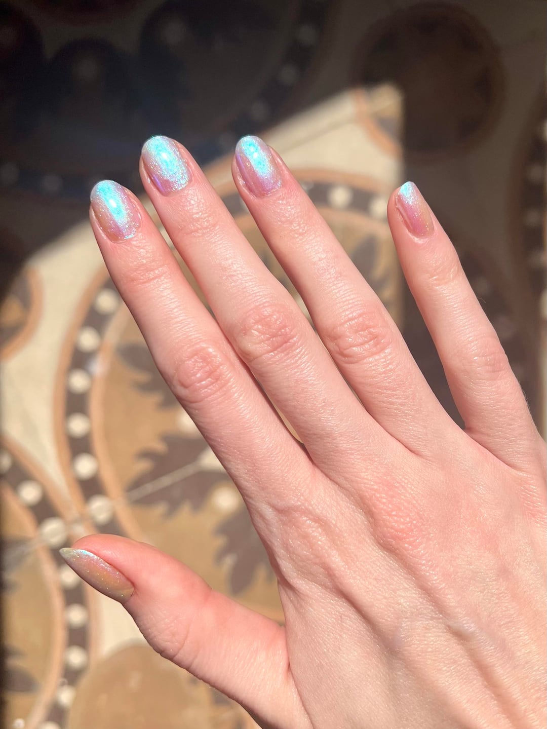 I always wear fun colours, glitter, holographic, duochrome etc, most often all shades of green, blue, purple but wanted something a tad more "neutral" or timeless but still with a hint of glitter or shifty fun for my wedding in June.